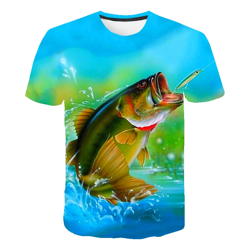 Детская футболка с 3D-принтом Fish, забавная футболка в стиле хип-хоп, футболка для мальчиков и девочек, одежда для рыбалки и металла, повседневный Топ, 2022