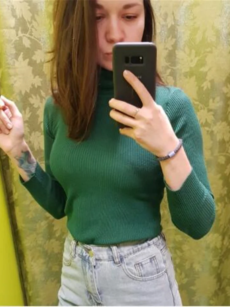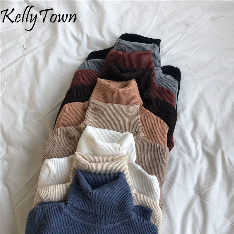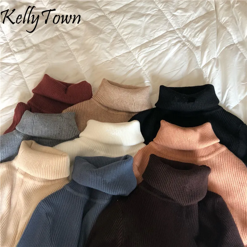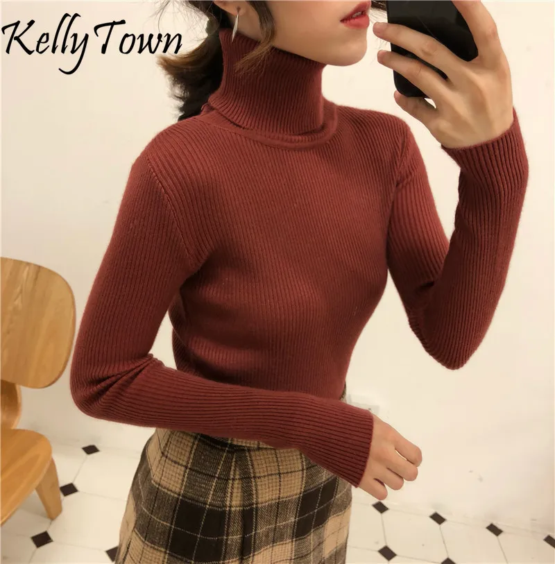Женский свитер, пуловер с высоким воротником, Осень-зима, 16 цветов, корейские облегающие Женские базовые Топы, повседневный мягкий вязаный свитер, теплый джемпер