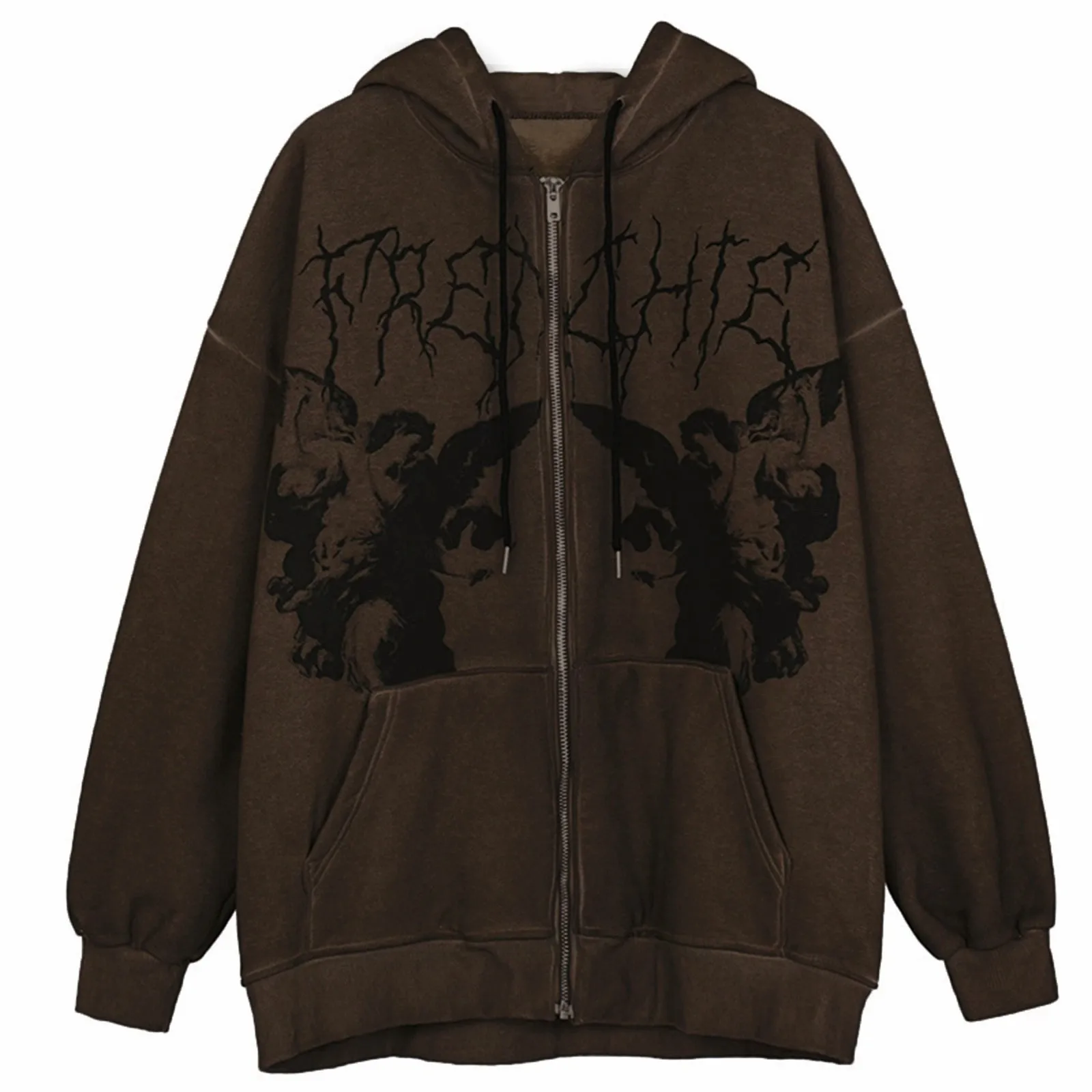 Толстовка МужскаяЖенская Y2K, с капюшоном на молнии, с принтом анге...