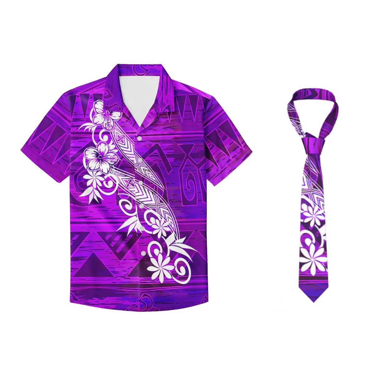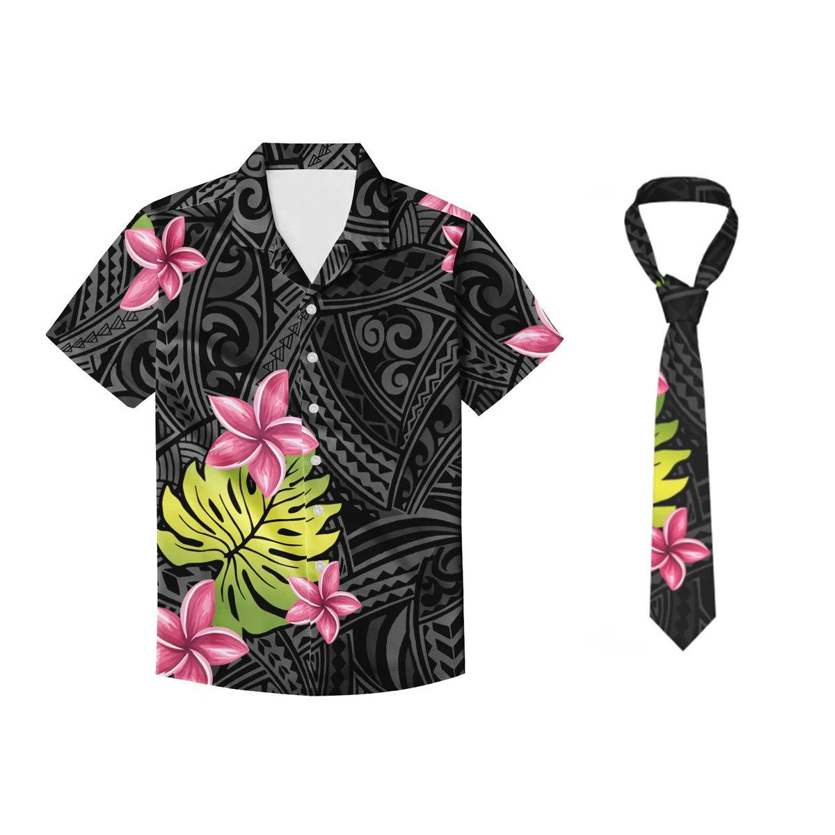 Винтажные полинезийские мужские рубашки с коротким рукавом и цветоч...