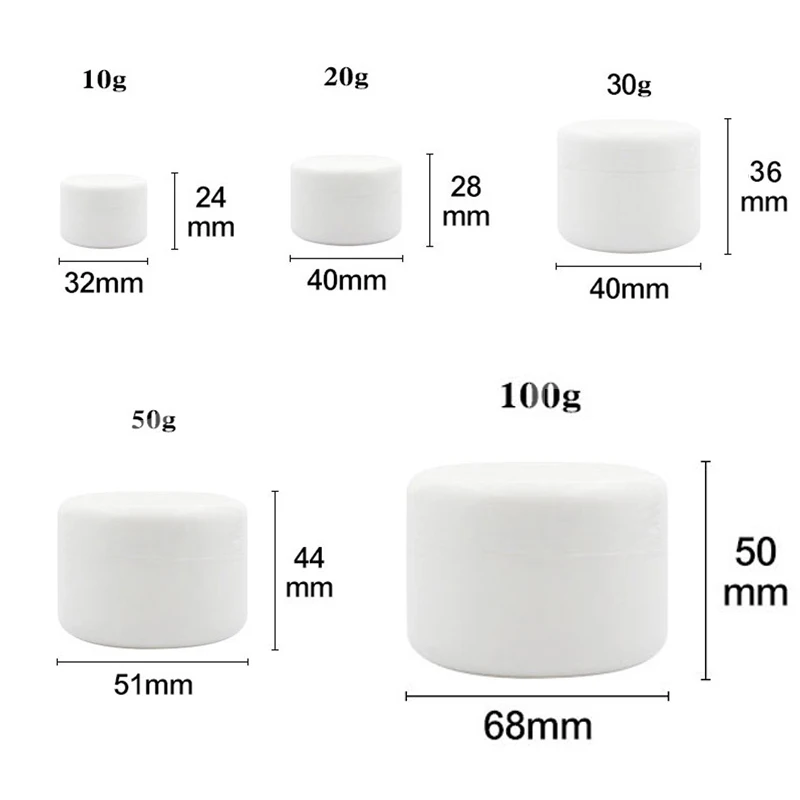 Пустые банки для макияжа 100 шт., многоразовые бутылки для образцов, дорожный женский косметический контейнер, Белый 10 г 20 г 30 г 50 г 100 г