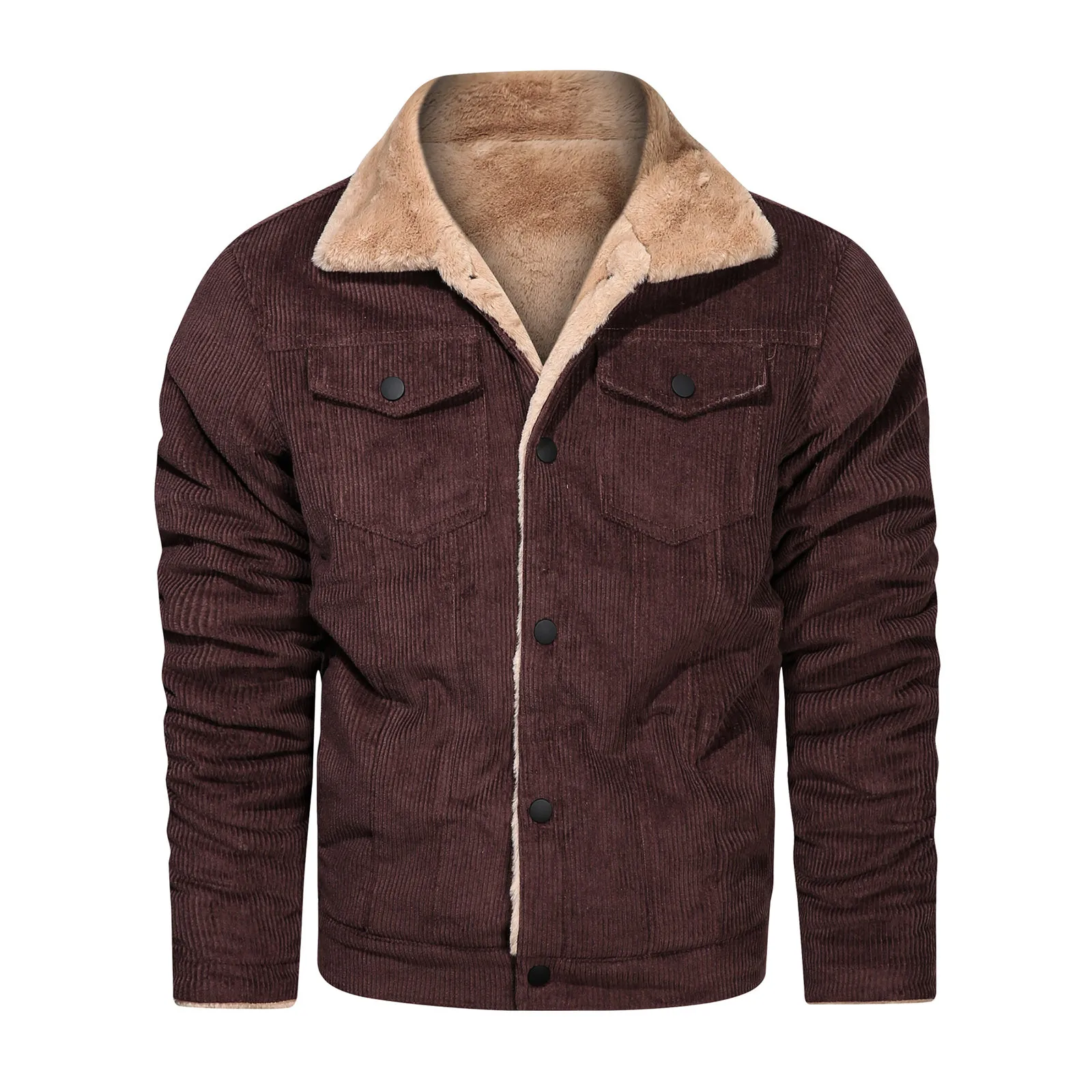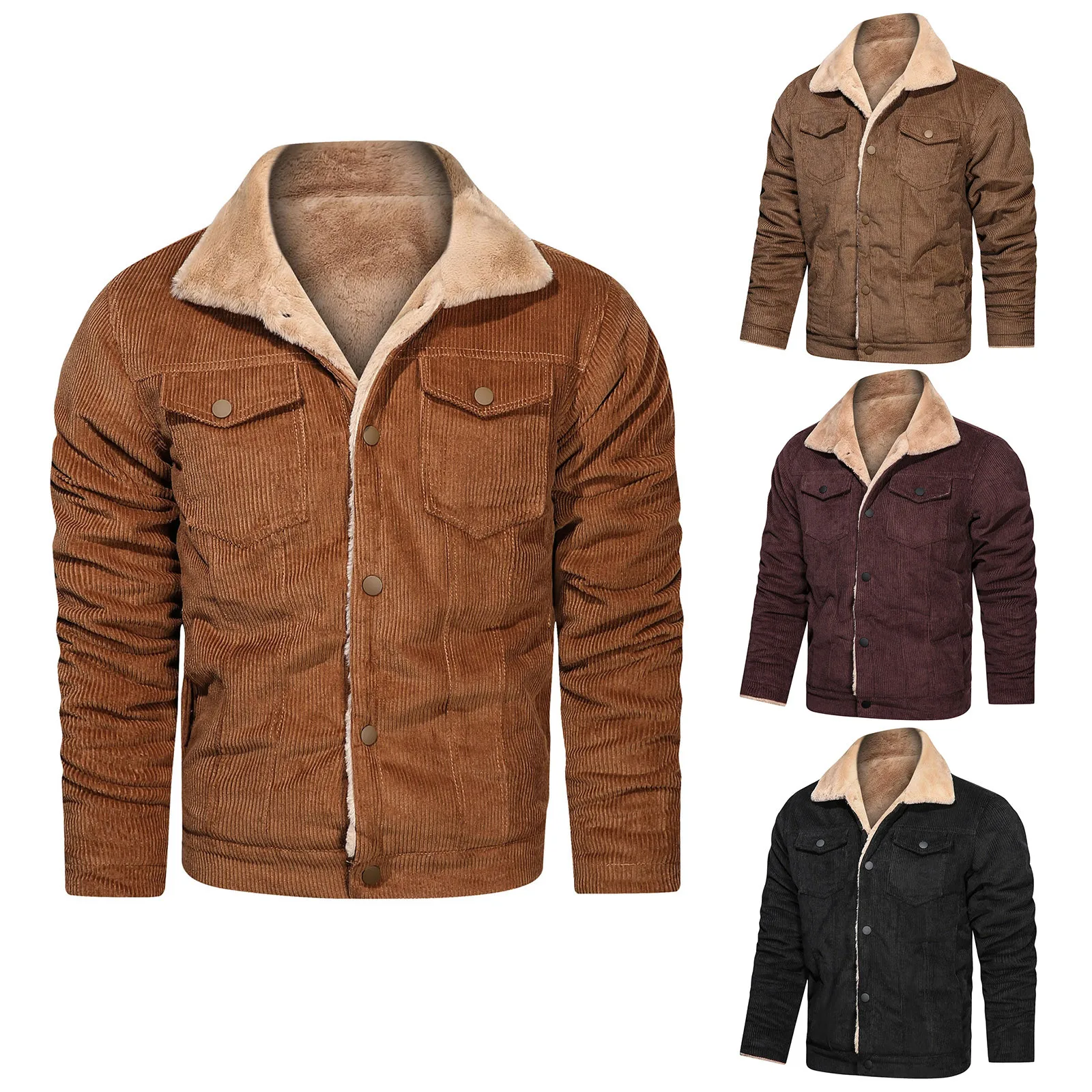 Мужская Повседневная зимняя теплая Вельветовая куртка с длинным рукавом и отложным воротником