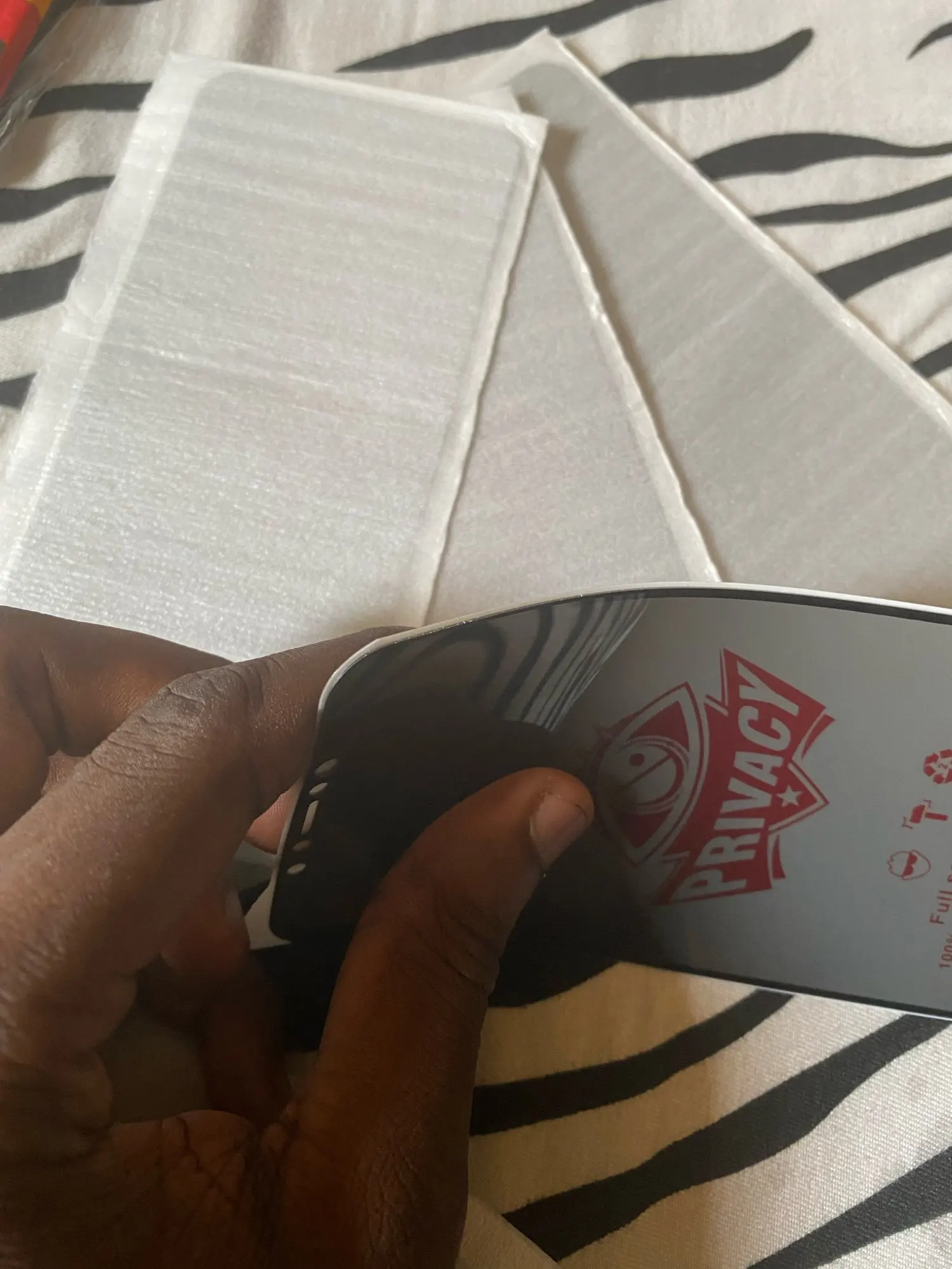 Качество очень хорошее! Я рекомендую это! Это супер сдержанно! Люди, которые находятся на моей стороне, не могут видеть, что на моем экране