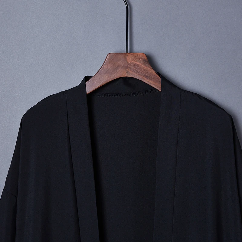 2021 модное летнее однотонное пальто, японское кимоно, кардиган, хаори для женщин и мужчин, свободное тонкое черное кимоно, верхняя одежда G263