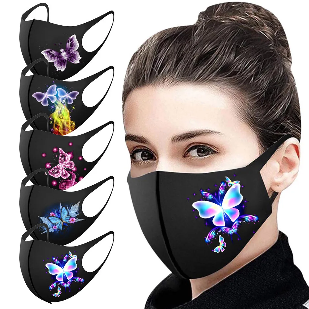 5 шт., маски с бабочками для защиты рта, моющиеся шелковые маски, г...