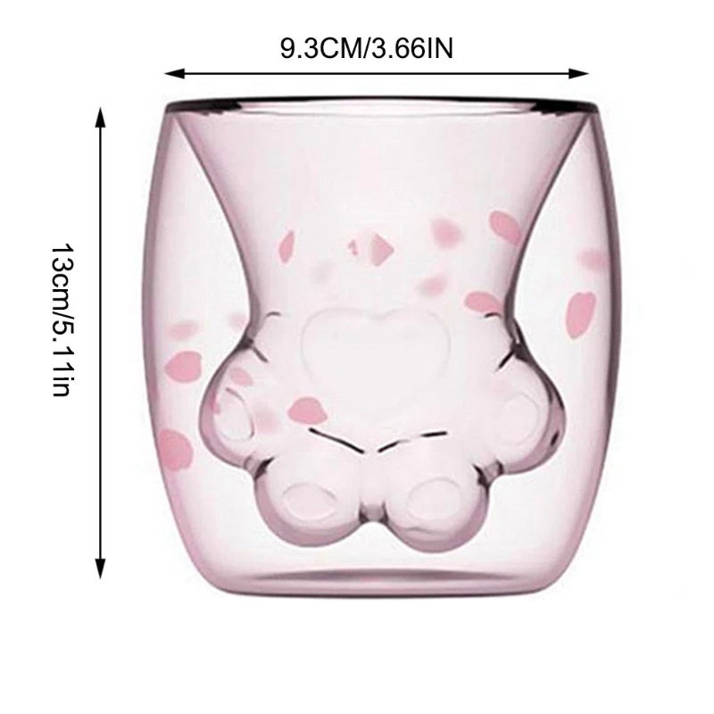 Прозрачная изоляционная стеклянная чашка для воды в виде вишневого порошка, чашка в форме кошачьего когтя, креативная стеклянная двухслойная чашка для кофе и молока