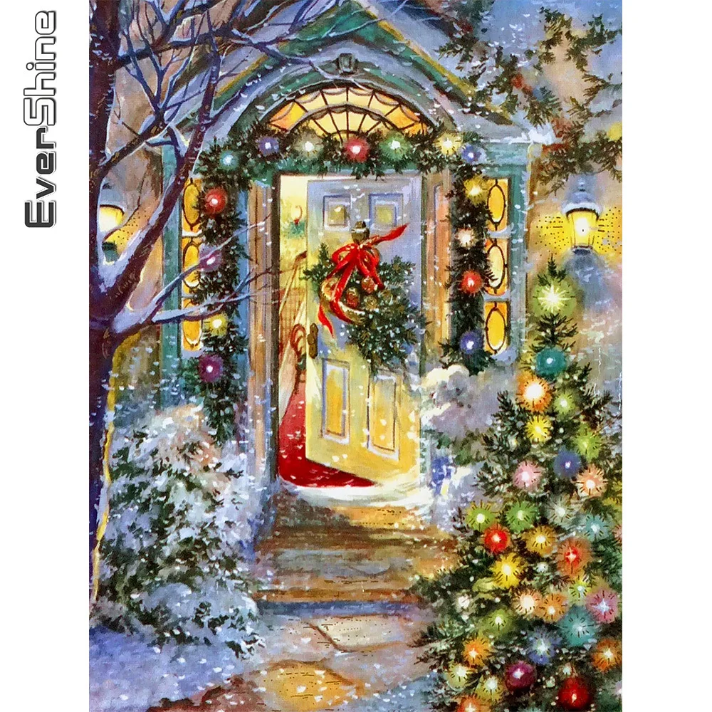 Evershine Бриллиантовая живопись, дверь, пейзаж, вышивка крестиком, зима 5D, сделай сам, Новое поступление, сделай сам, искусство, ручная работа, подарок