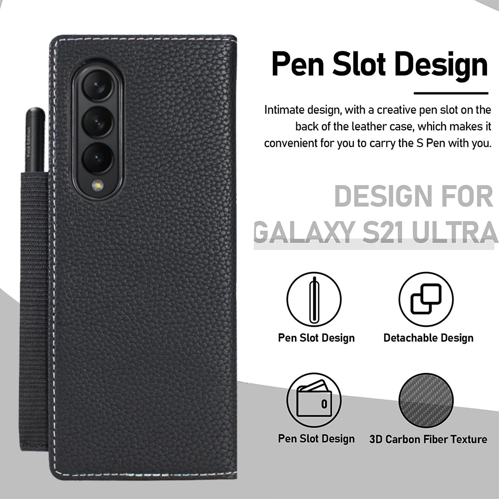 Чехол для Samsung Galaxy Z Fold 3 5G с держателем для ручки S, Встроенный слот для S-Pen, Роскошный кожаный бумажник, откидной Чехол для телефона, новинка