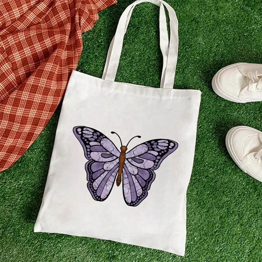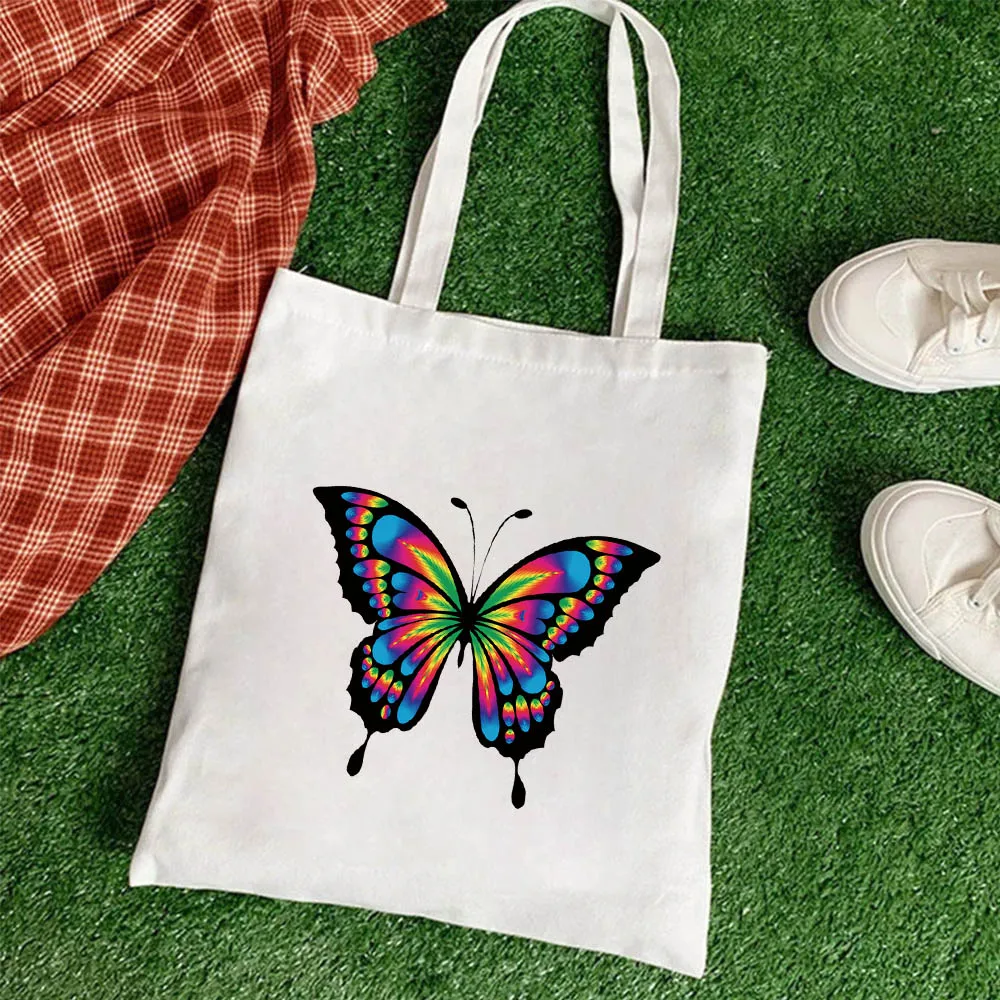 Холщовая Сумка с принтом бабочек в готическом стиле, повседневный шоппер с принтом в стиле Харадзюку, вместительная винтажная Женская трендовая стильная сумка на плечо