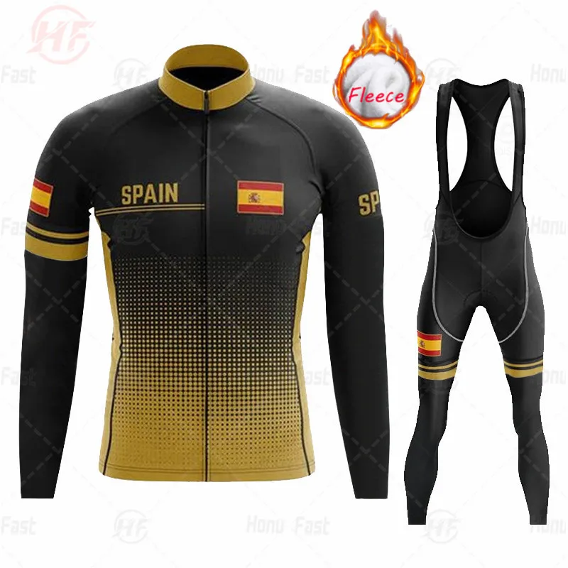 Зимняя Теплая Флисовая одежда для велоспорта 2022, испанский мужской костюм из Джерси, уличная одежда для езды на велосипеде и горном велосипеде, теплый комплект с нагрудником и брюками для велоспорта