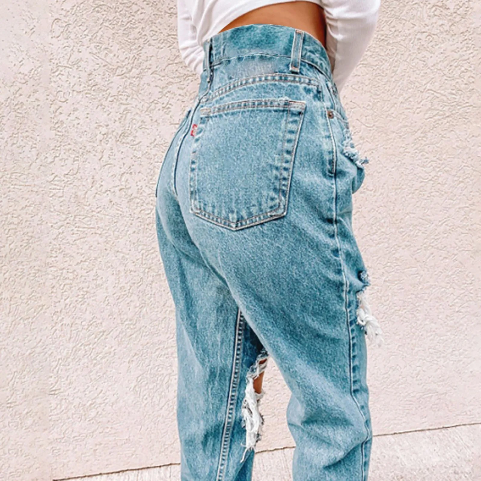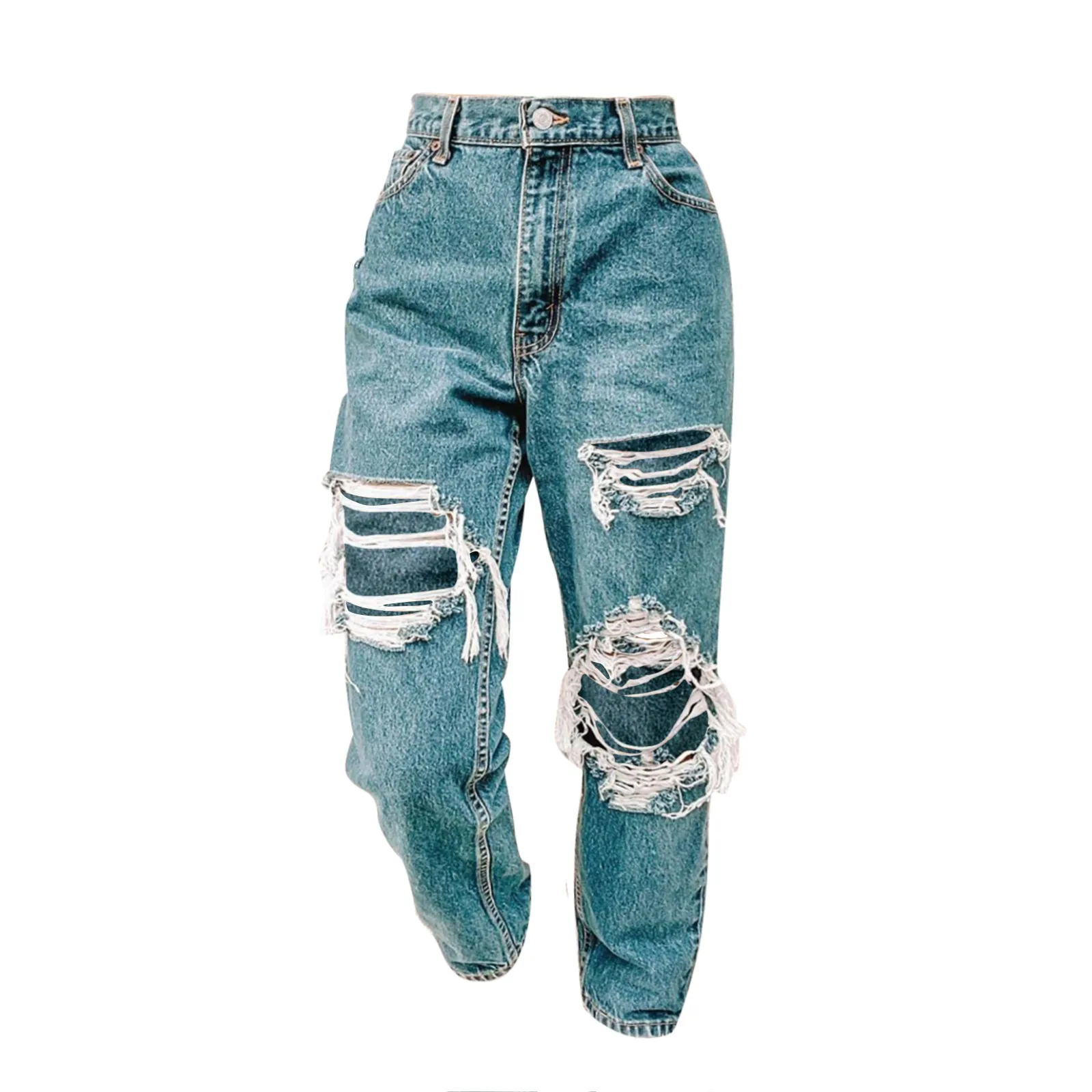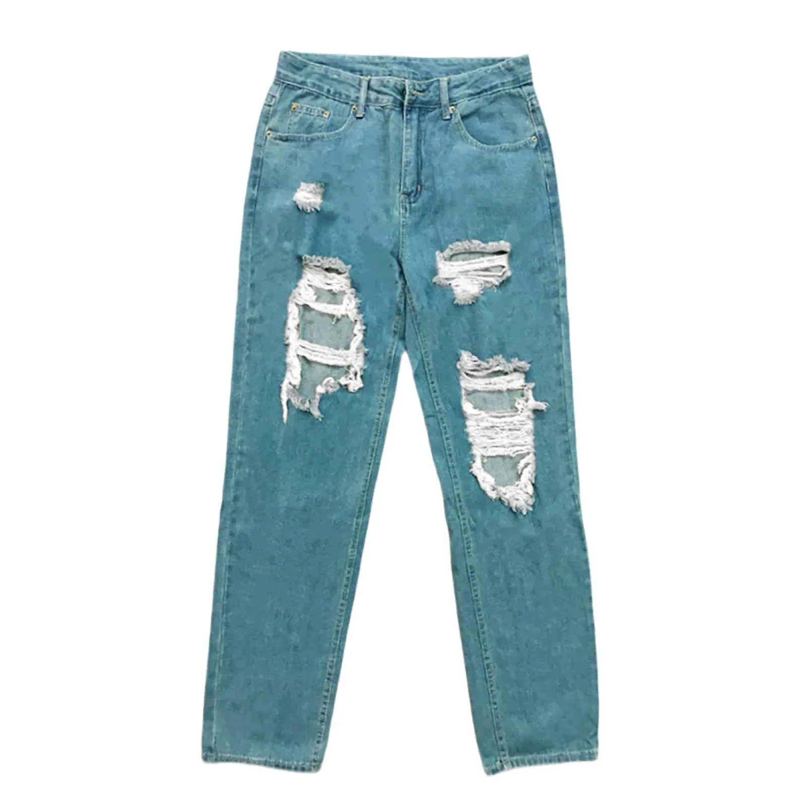 Рваные джинсы для женщин, мешковатые, с высокой талией, модные, голубые, прямые, с дырками, с широкими штанинами, брюки карго для женщин #01