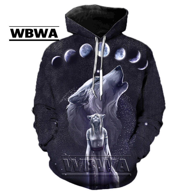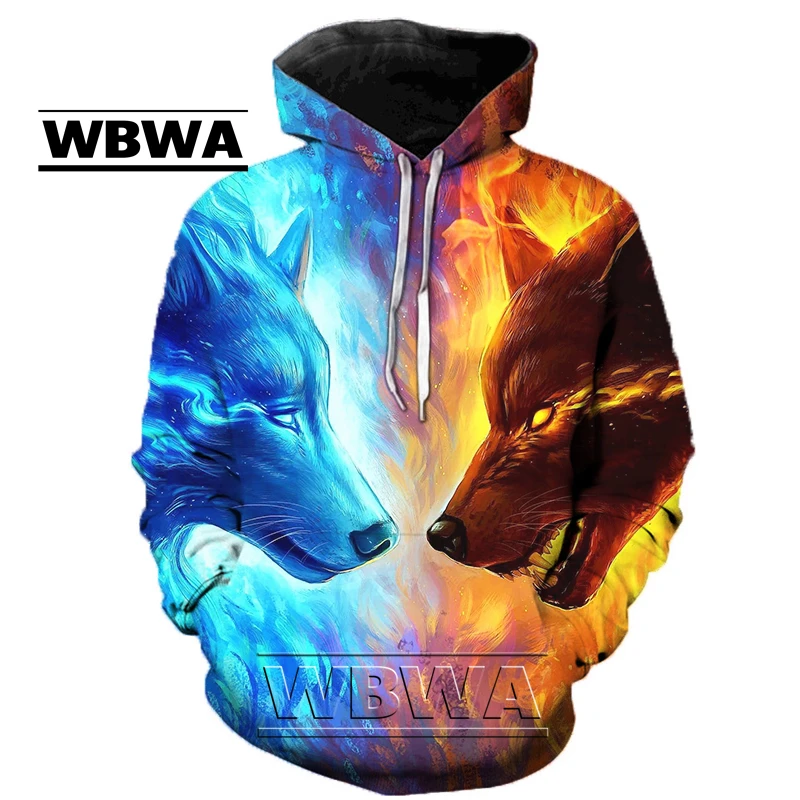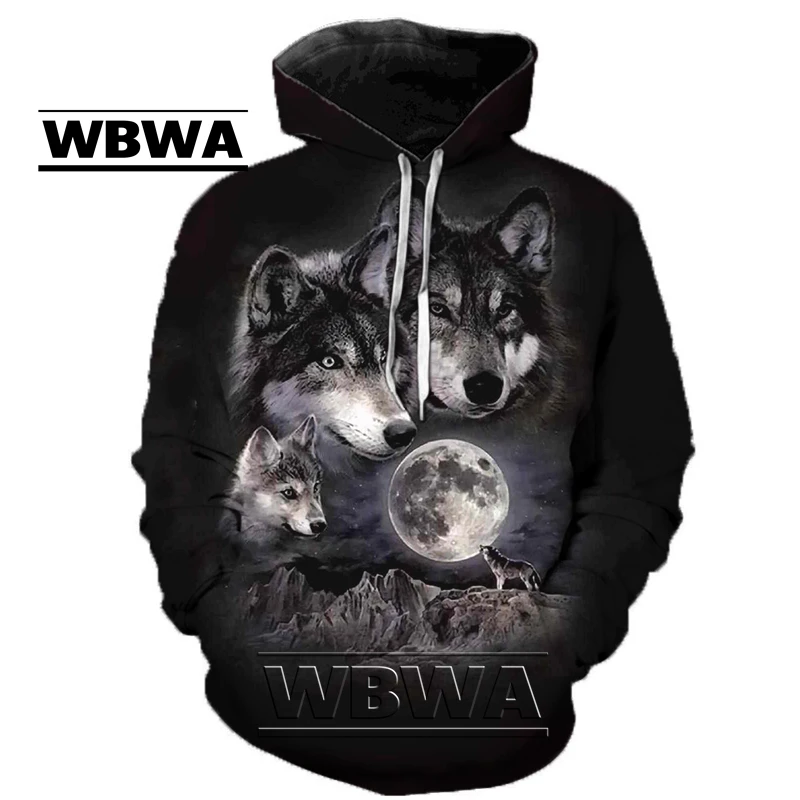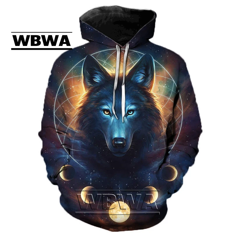 Новинка 2020, модные толстовки с капюшоном с изображением волка для...