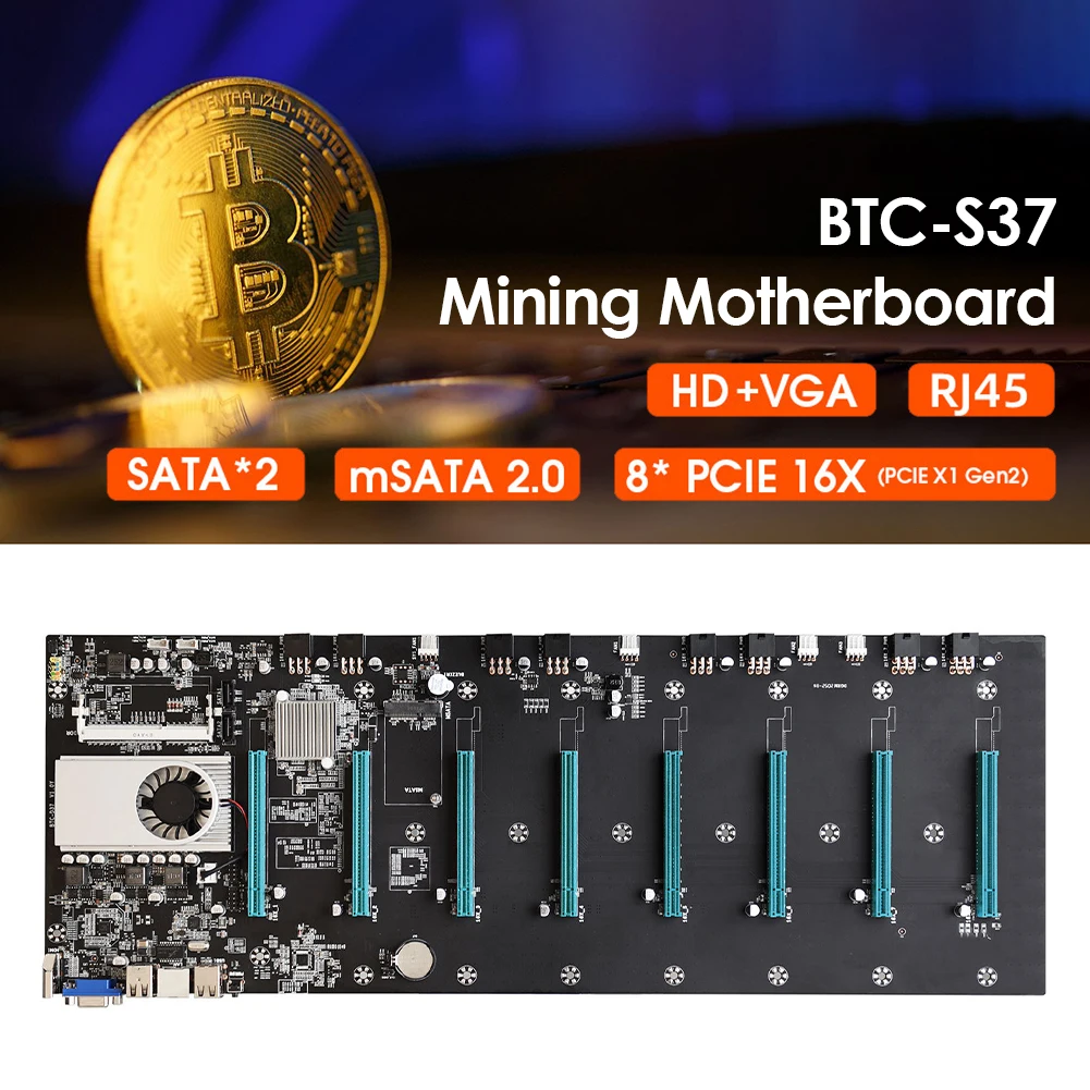 BTC-S37 Pro Mining материнская плата 8 PCIE 16X граф карта SODIMM DDR3 SATA3.0 Поддержка VGA + HDMI-совместимость для BTC Miner машина аксессуарыХарактеристика:1. 8xPCIE 16X графика разъем карты, 575 мм шаг.2. Высокая производительность вычислений, на 10% выше, чем материнская плата того же уровня.3. Оснащен разъемом памяти Sodimm DDR3, разъемом питания 8x6PIN PCIE X16, что значительно повышает производительность материнской платы.4. Конденсатор стабилизации напряжения может обеспечить стабильное напряжение для вашего оборудования электропитания.5. Он может обеспечить тихую производительность, низкое энергопотребление, низкое тепловыделение, энергосбережение и безопасное использование.Спецификация:Модель: BTC-S37Цвет: черный + синийРазмер: 575x195ммПамять: 1 слот DDR3 Sodimm, поддержка 1066/1333/1600 МГцХранение: 1 x SATA3.0 + 1 x SATA2.0 + 1 x m SATA2.0USB: 4 USB2.0Сетевой порт: гигабитный сетевой порт RJ45Расширяемые порты: 8 x PCIE 16X, 8x6PIN PCIE X16 разъем питания, HDMI-Совместимость + VGAПримечание:В связи с различиями мониторов и эффектами освещения реальный цвет товара может немного отличаться от цвета на фотографиях. Спасибо!Возможны отклонения в 1-2 см вследствие измерений вручную.