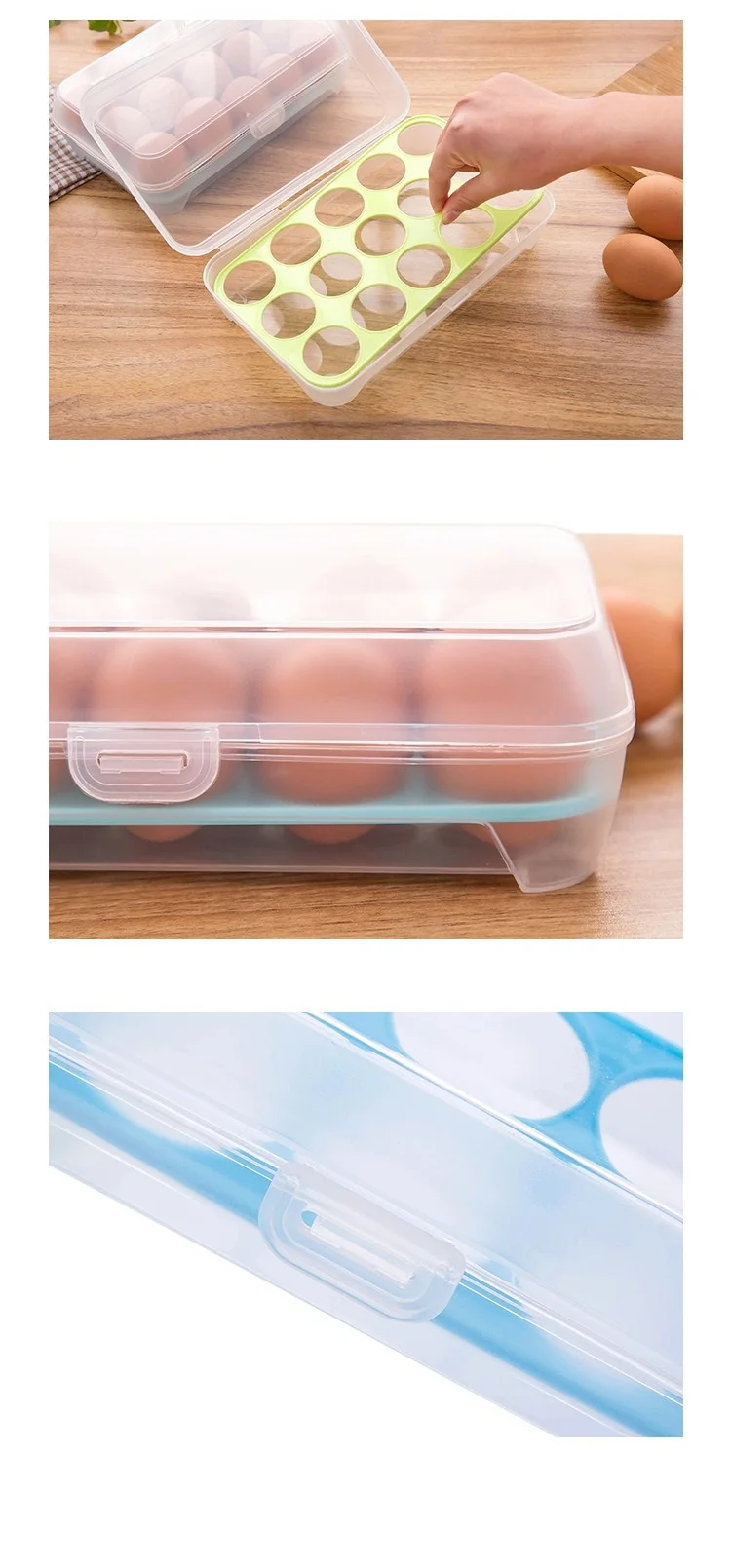 Кухонный Контейнер для яиц с 15 ячейками, холодильник, портативный контейнер для хранения яиц для пикника, пластиковая коробка для яиц, поднос для яиц, яичная сетка