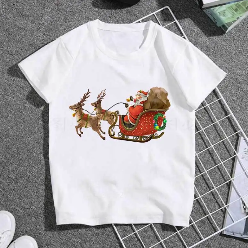 Детская футболка с принтом Санта Клауса и оленей, с коротким рукавом