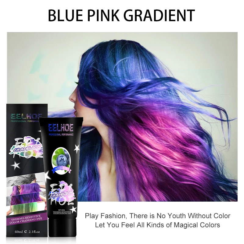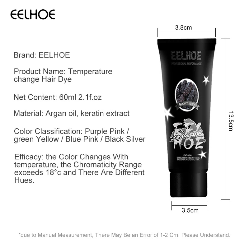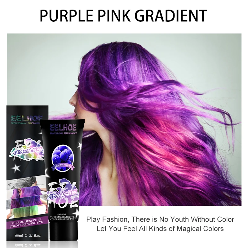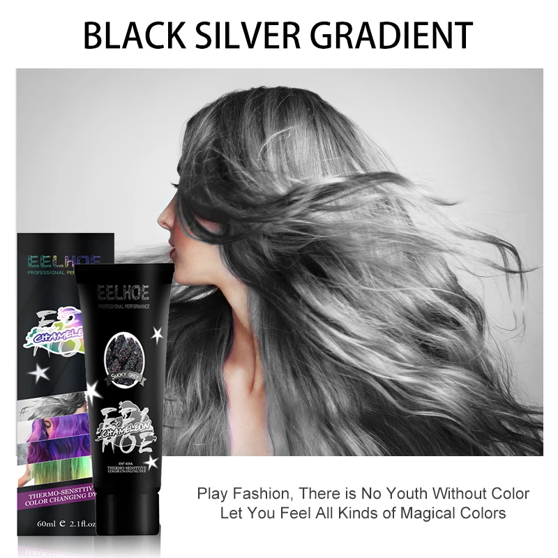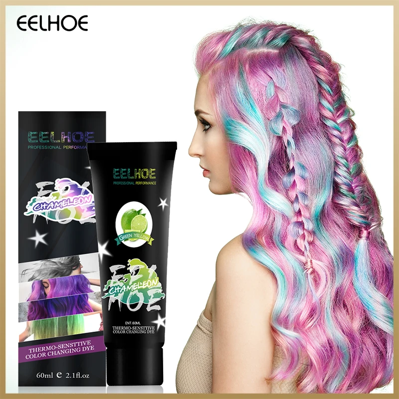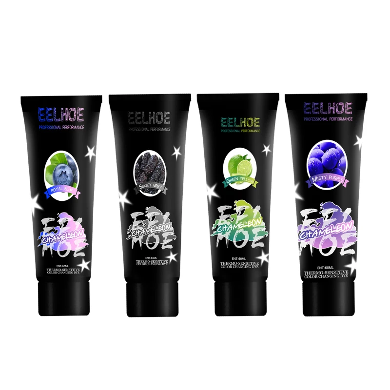 Краска для волос EELHOE 60 мл, профессиональный цветной крем, волшебный термохромный полуинструмент, постоянная фиолетовая, серая краска для волос, краска для зеленых волос