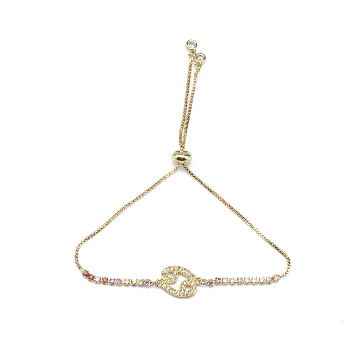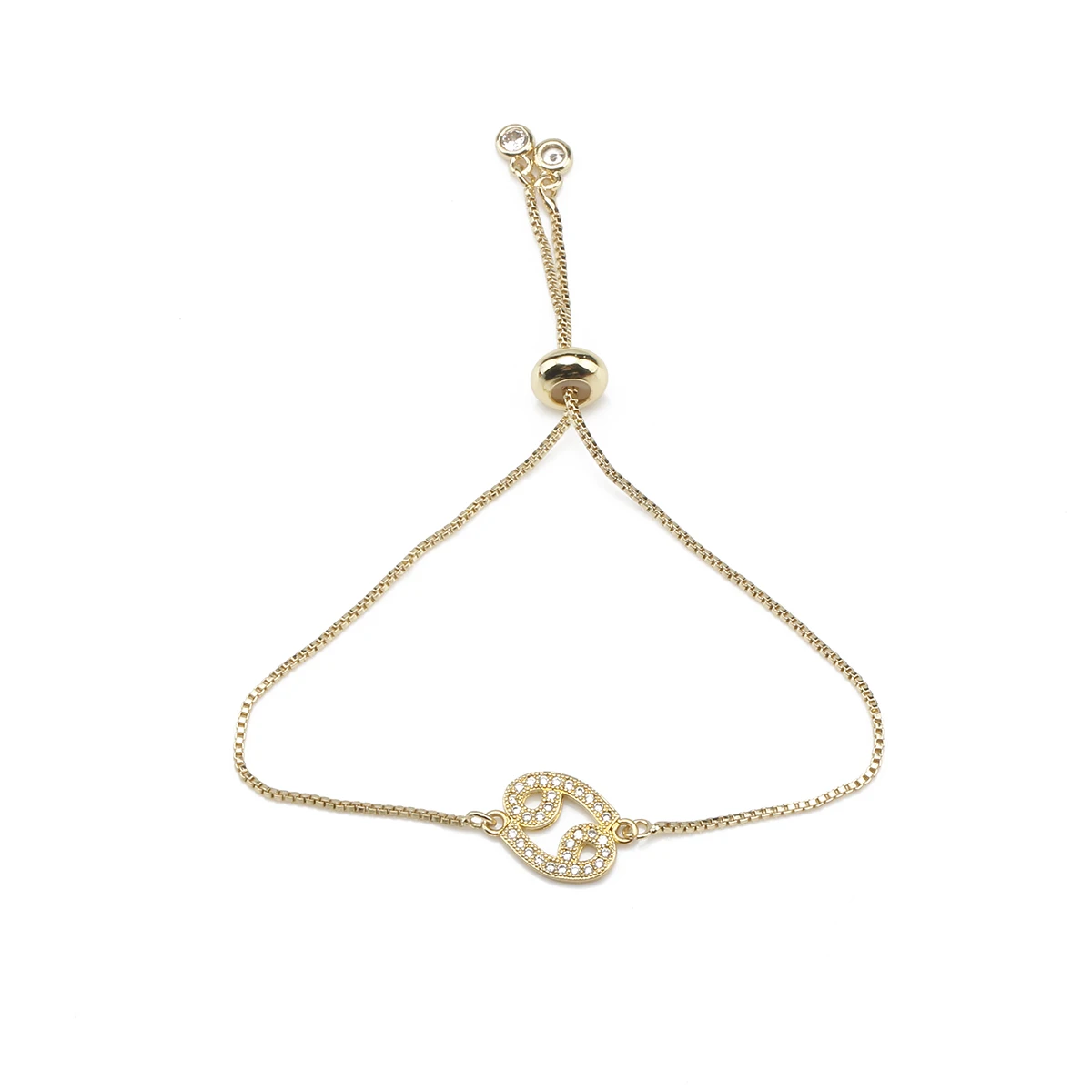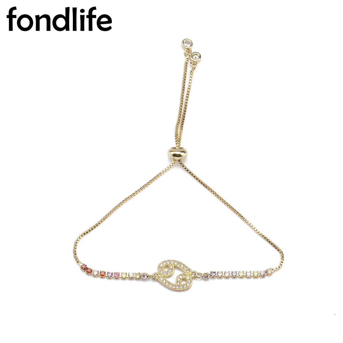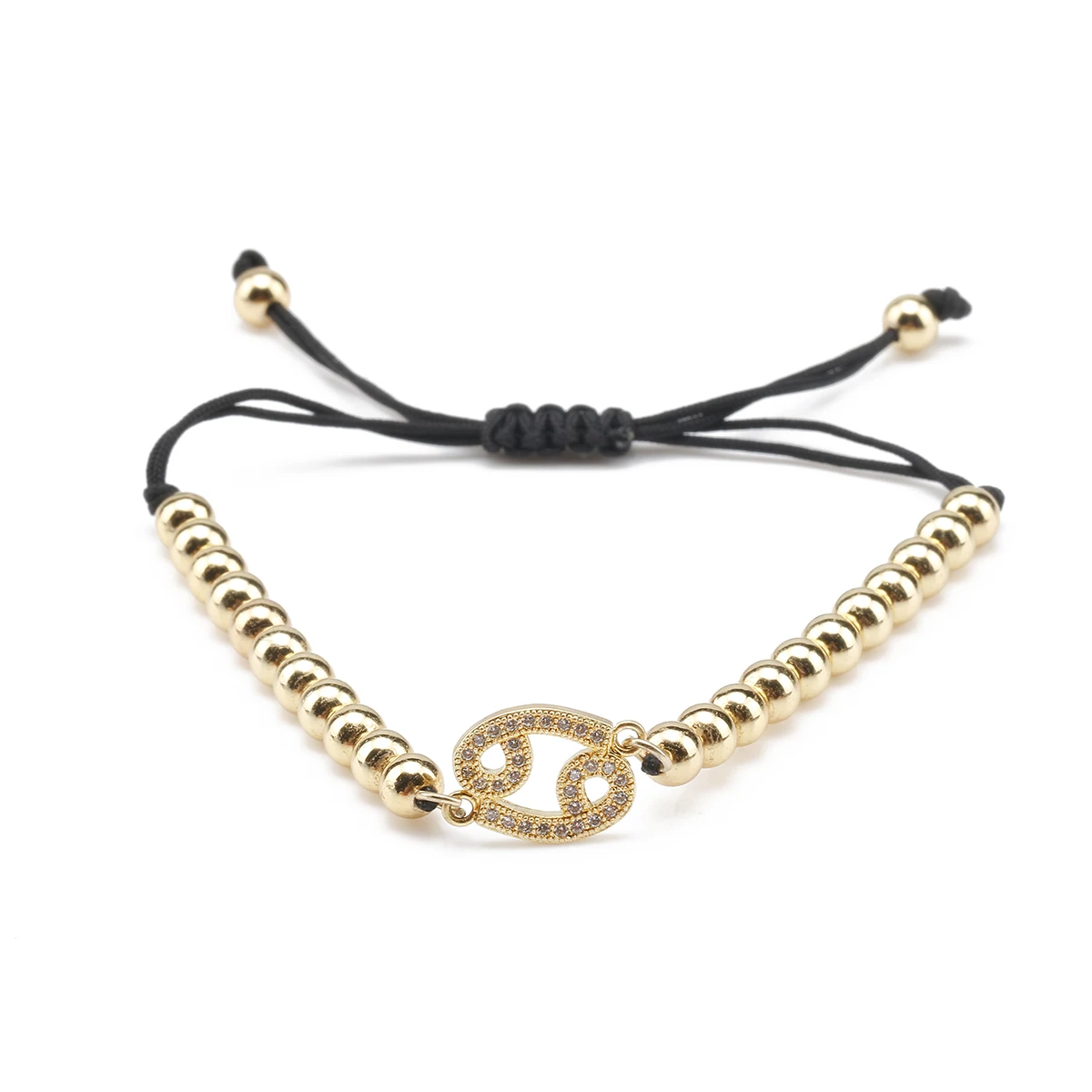 Женский браслет-цепочка с кубическим цирконием, позолоченный браслет с изображением краба и двенадцати созвездий, украшение в подарок