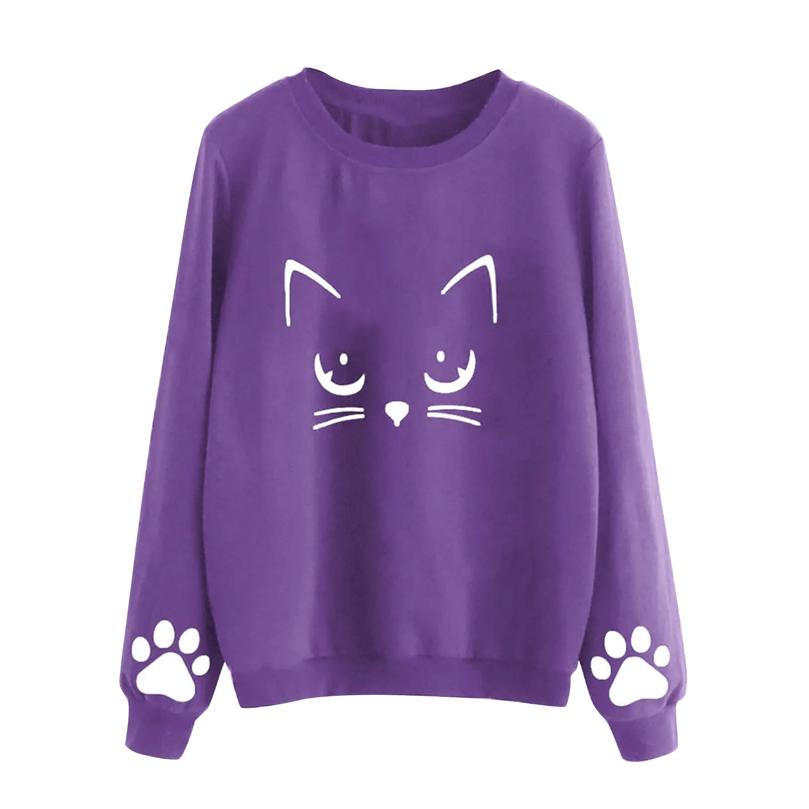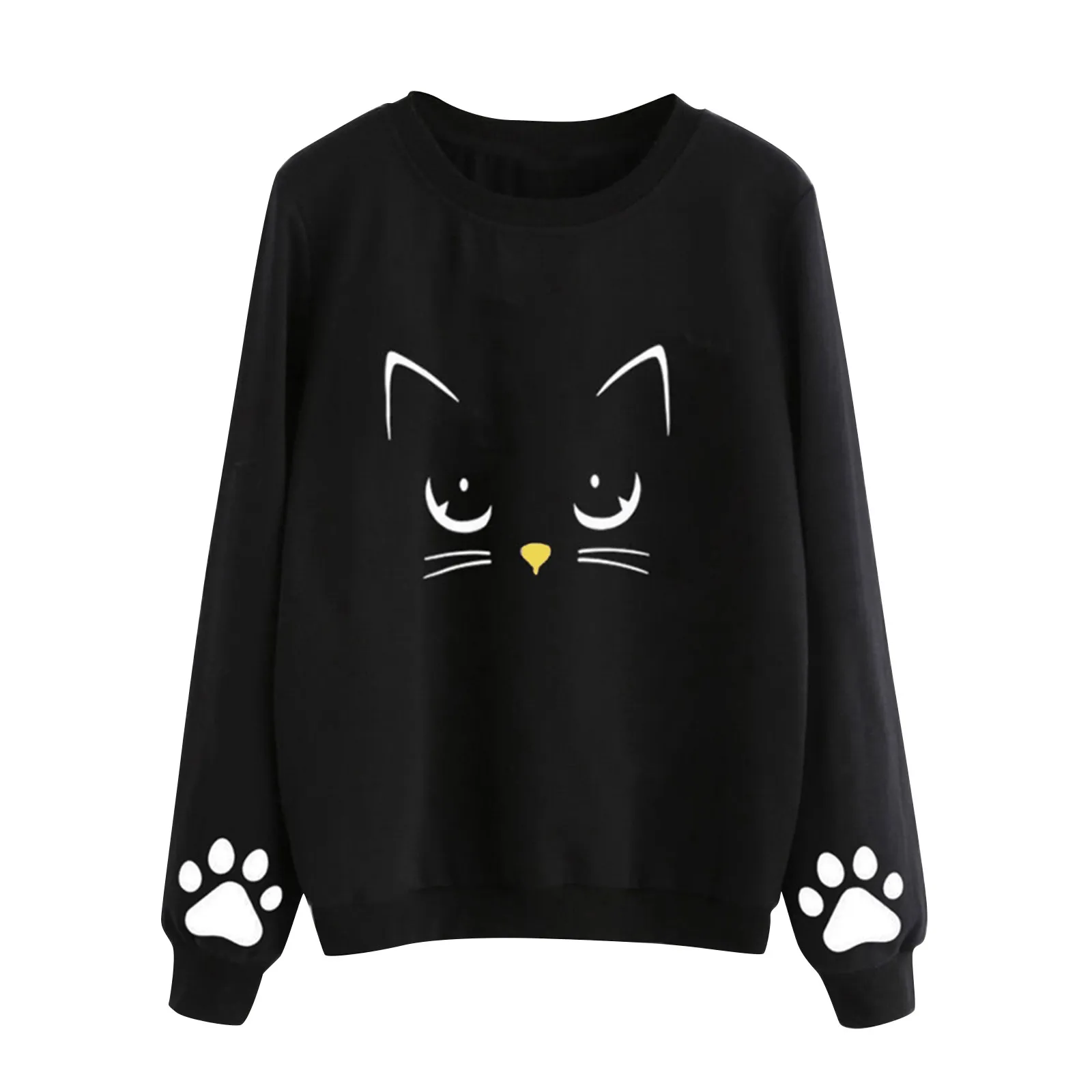Женский Повседневный свитер с принтом кошачьей лапки, Свободный пуловер с длинным рукавом и круглым вырезом, уличная одежда