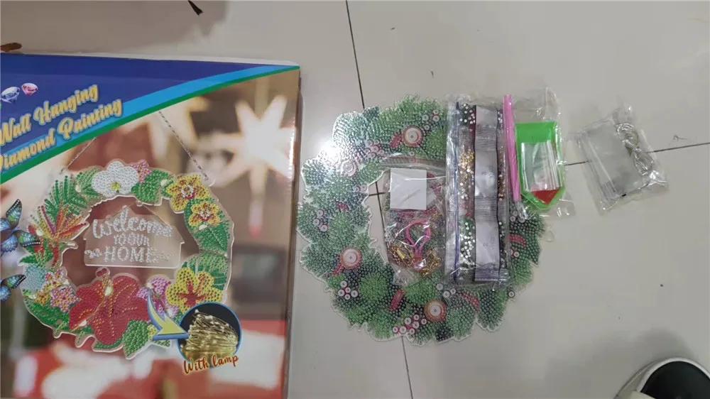 Рождественский Декор, набор для алмазной вышивки, алмазная живопись особой формы, венок светодиодный светильник кой, алмазное искусство, домашний Настенный декор