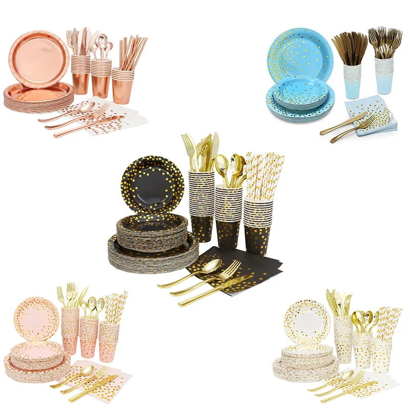 80 шт. одноразовых столовых приборов для вечерние, включая бумажные тарелки, салфетки, чашки, пластиковые вилки, ножи и ложки для дня рождения