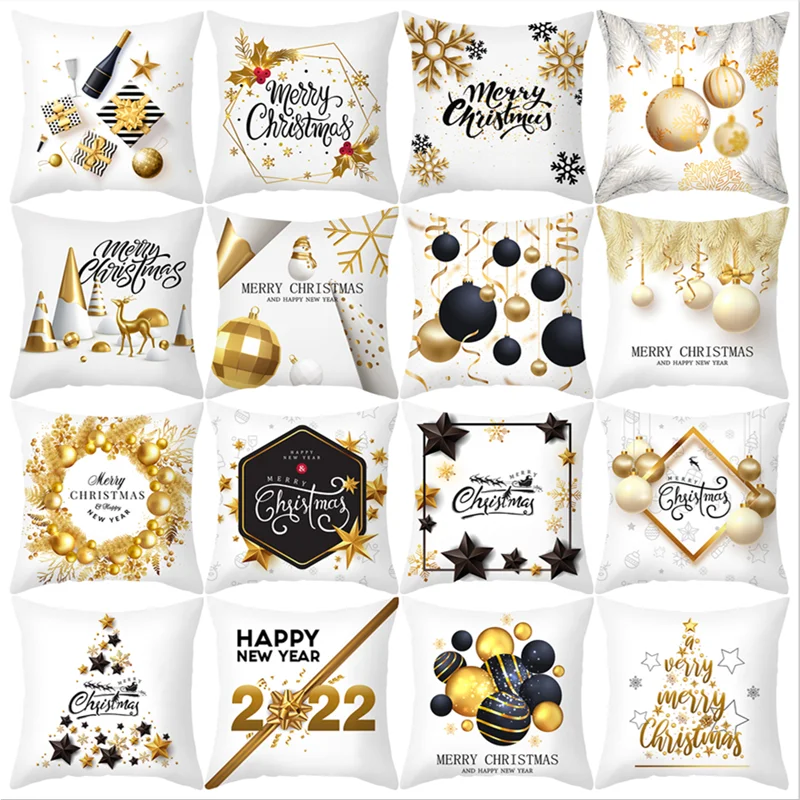 Рождественское украшение для дома, золото черный Чехол на подушку, ...