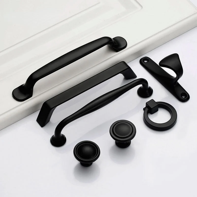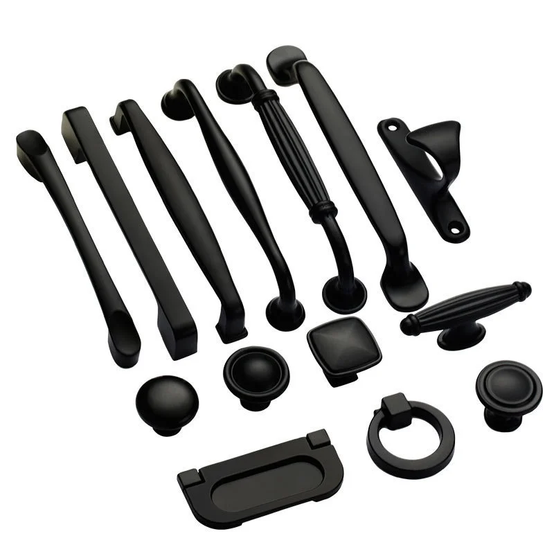 Однотонная мебельная фурнитура с одним отверстием, аксессуары для ящиков, шкафов, дверных ручек, американские черные ручки для шкафов, чуланов, буфетов