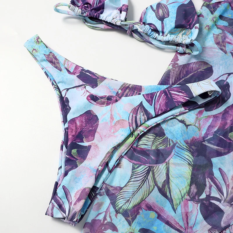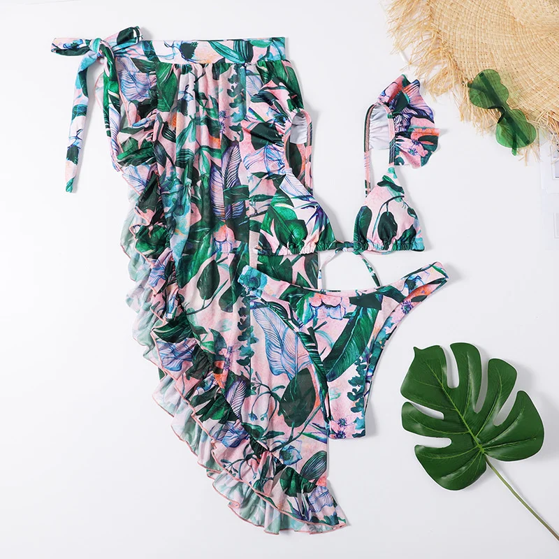 Купальник из 3 предметов с юбкой, скромный купальный костюм, комплект бикини Beho, женская одежда для плавания с завязками сбоку, пляжная одежда 2021, бикини