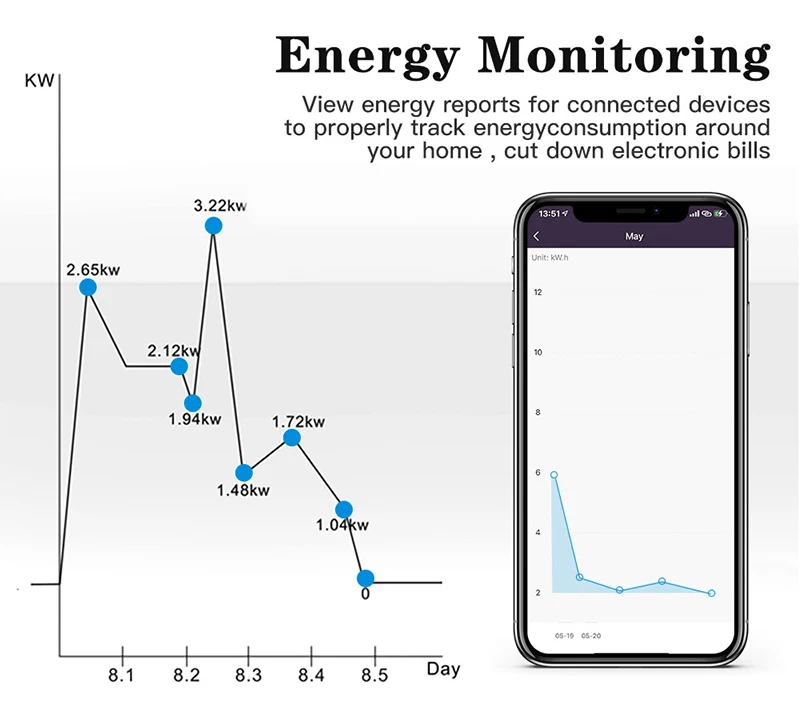 【Превратите Традиционные электрические приборы в умные электрические приборы】-Добавьте умную розетку к электроприбору и Используйте приложение мобильный телефон для удаленного управления переключателем электрического прибора.