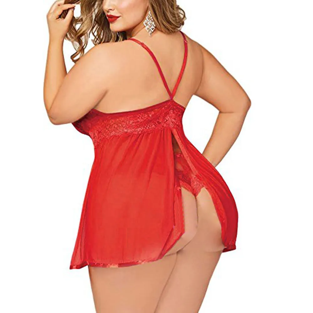 Размера плюс эротические костюмы Женское платье сексуальное порно белье V-образный вырез сексуальное белье в стиле Babydoll кружевная ночная рубашка пижама сексуальное белье