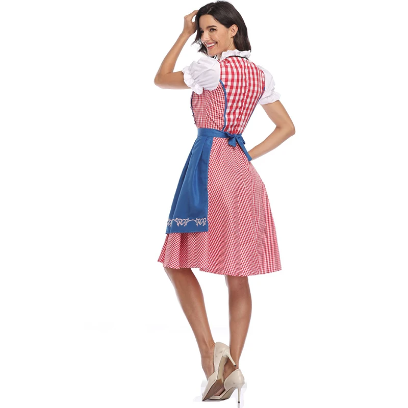 Красно-синее клетчатое женское платье для Октоберфеста с фартуком женское платье для косплея карнавала Хэллоуина модное платье Вечерние