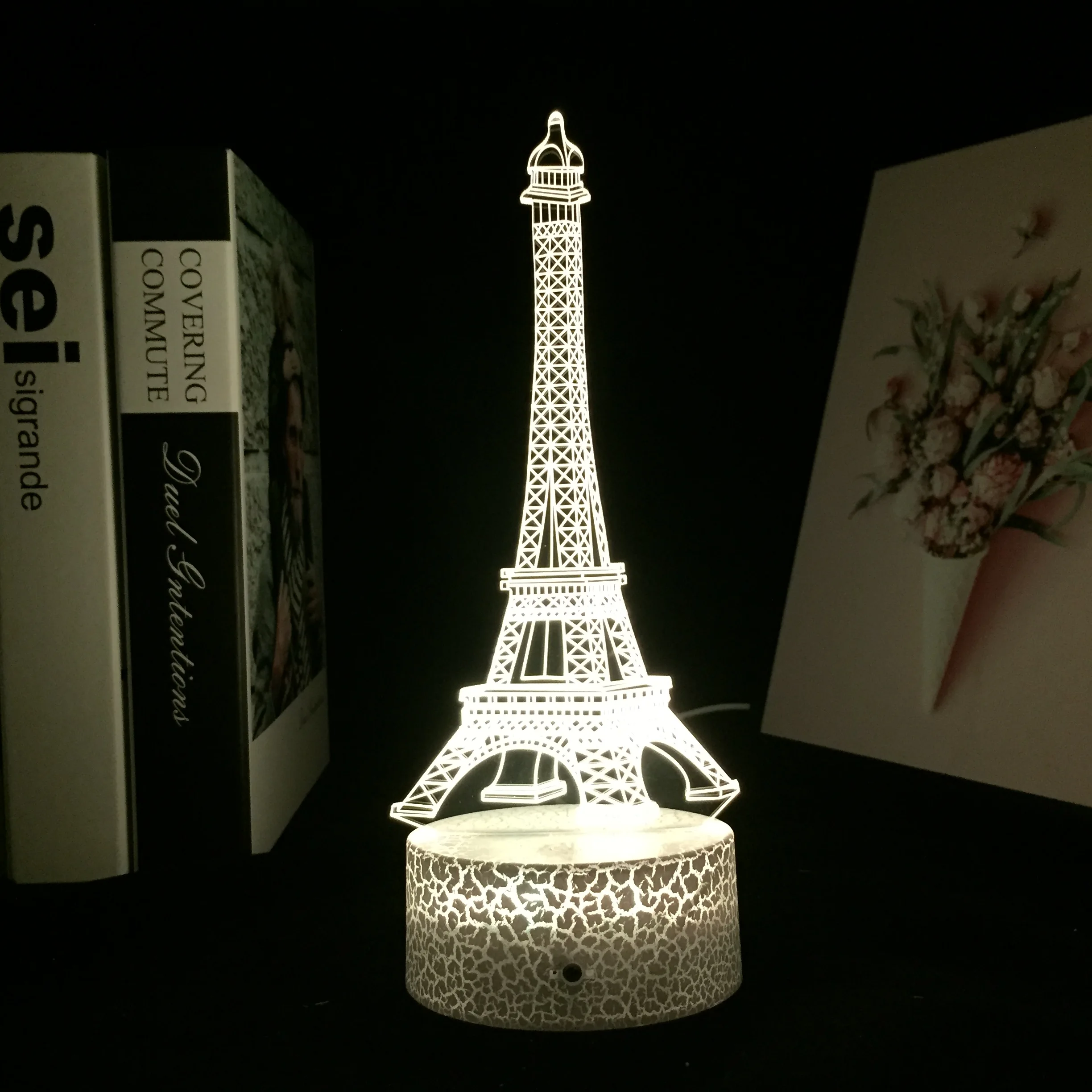 Парижская Эйфелева башня 3D иллюзия светодиодный светильник, уникальный подарок на день рождения, настольная лампа, изменение цвета, декор для детской спальни, светильник s