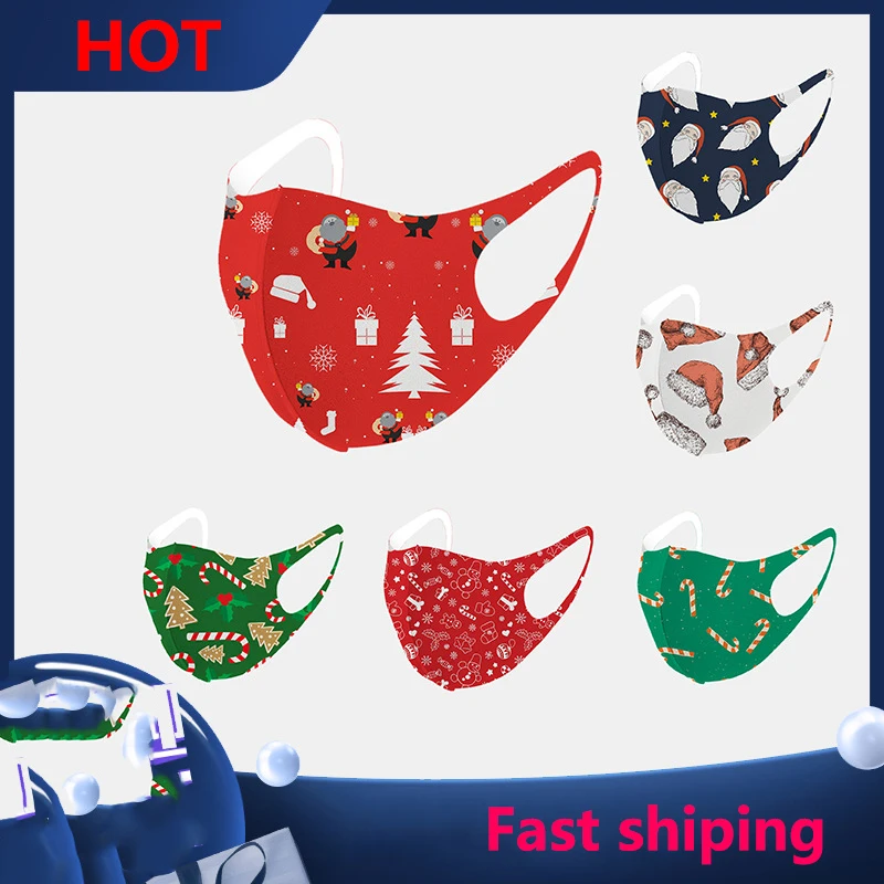 Новые рождественские подарки, Рождественский Декор, маска с мультяшным принтом для взрослых, Санта-Клаус, Рождественская елка, конфеты, маска для лица с новым годом 2022