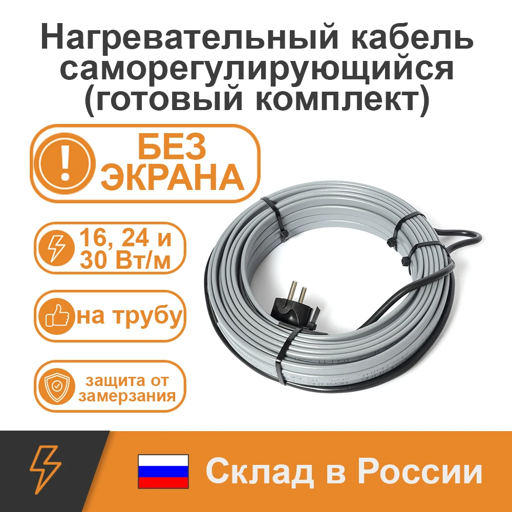 Нагревательный кабель саморегулирующийся SRLSRF 16,24,30 Втм БЕЗ ЭКРАНА, труба обогрев трубопровода, греющий кабель