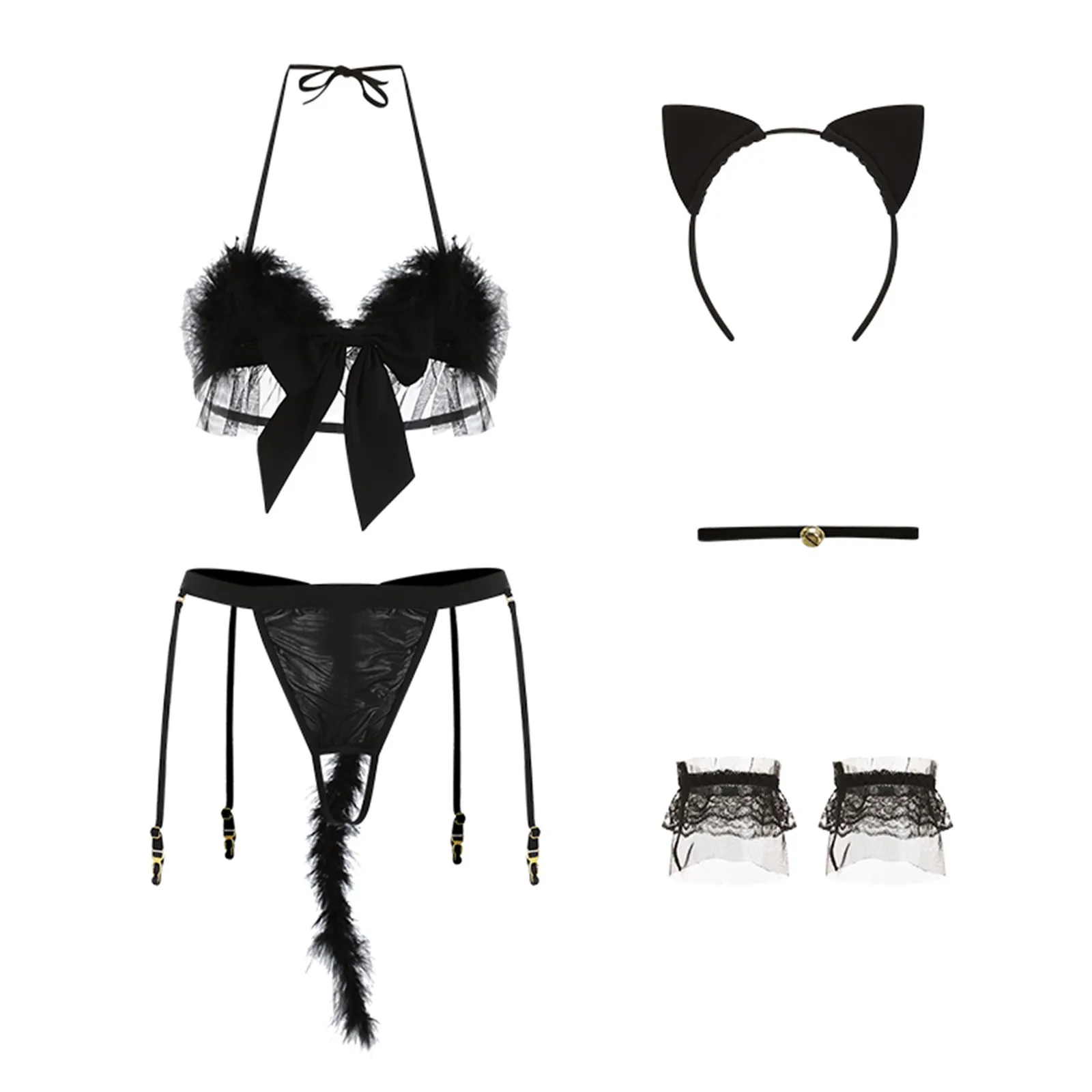 Новое сексуальное нижнее белье, плюшевая трехконечная повязка с подвесным воротником, милая кошка, косплей-униформа, страсть, соблазнительный костюм, нижнее белье