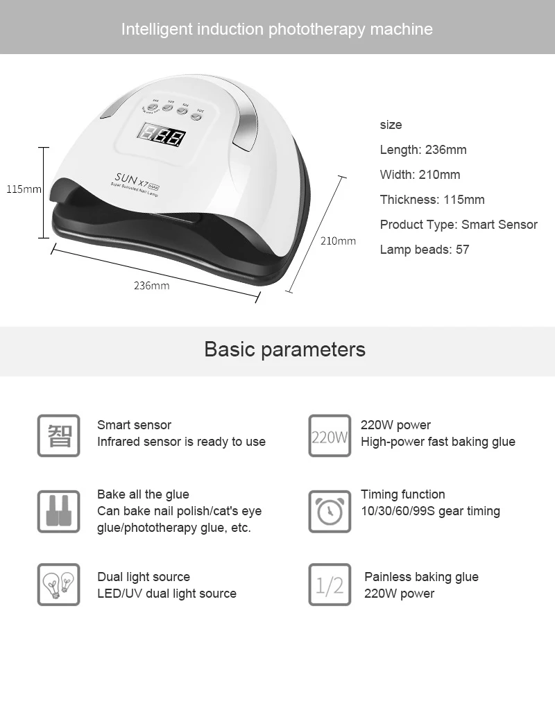 Может использоваться для сушки основного лака для ногтей, лака для ногтей, фототерапевтического клея и т. д.
