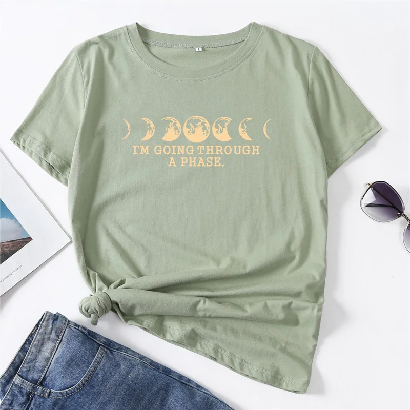 Женская футболка с коротким рукавом и круглым вырезом, с принтом луны