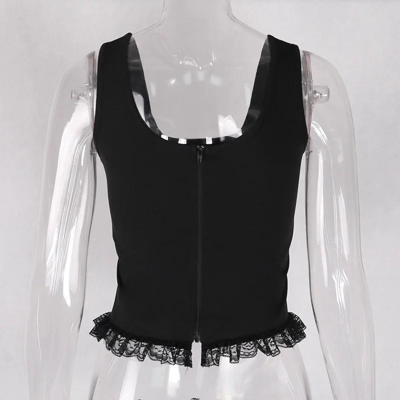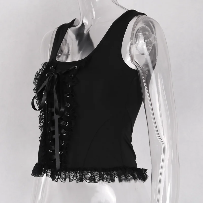 Женский топ с кружевом InsGoth, черный топ без рукавов, с сетчатыми...