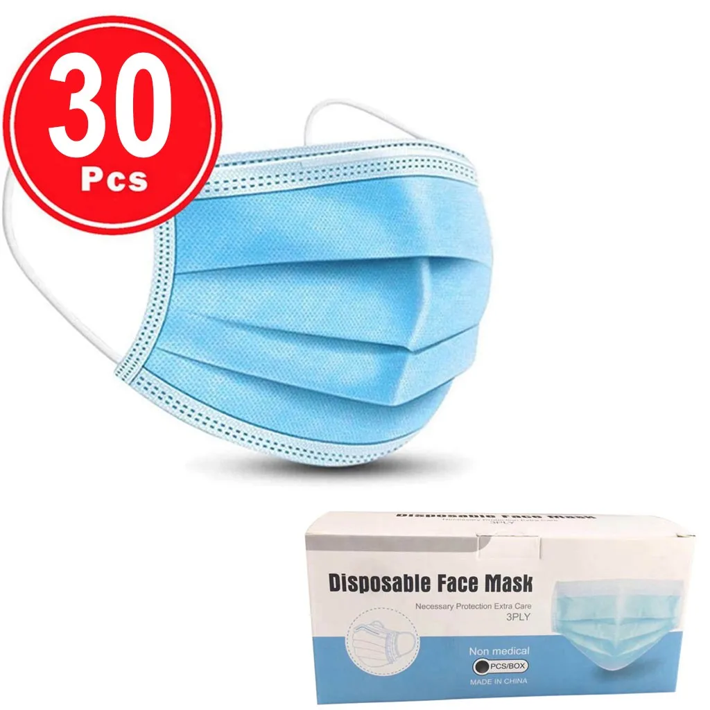 Разноцветная черная одноразовая маска для взрослых 30 шт., маска для лица, синяя регулируемая комфортная маска