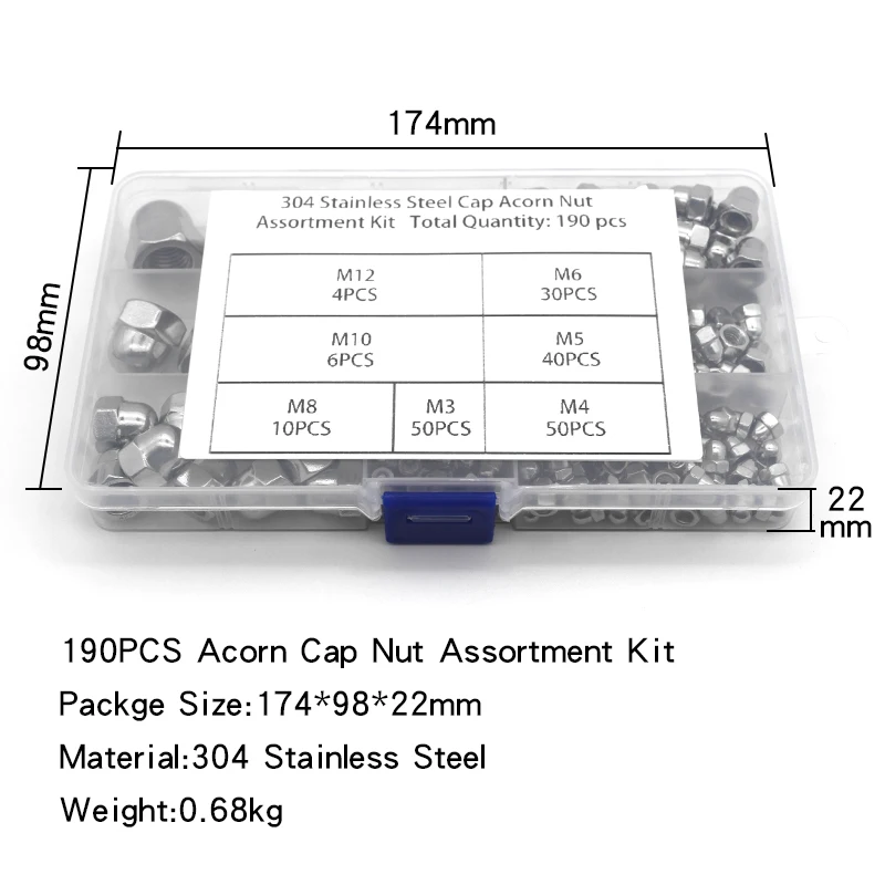 Набор колпачков из нержавеющей стали 190, M3 M4 M5 M6 M8 M10 M12 шт.