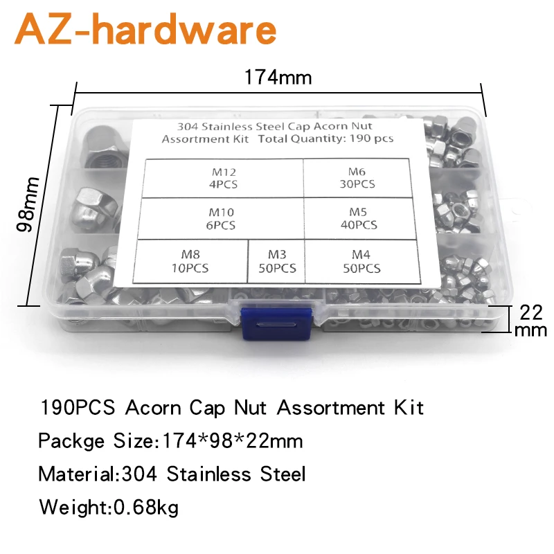 Набор гаек nindjin, 190 шт., шестигранная купольная гайка из нержав...