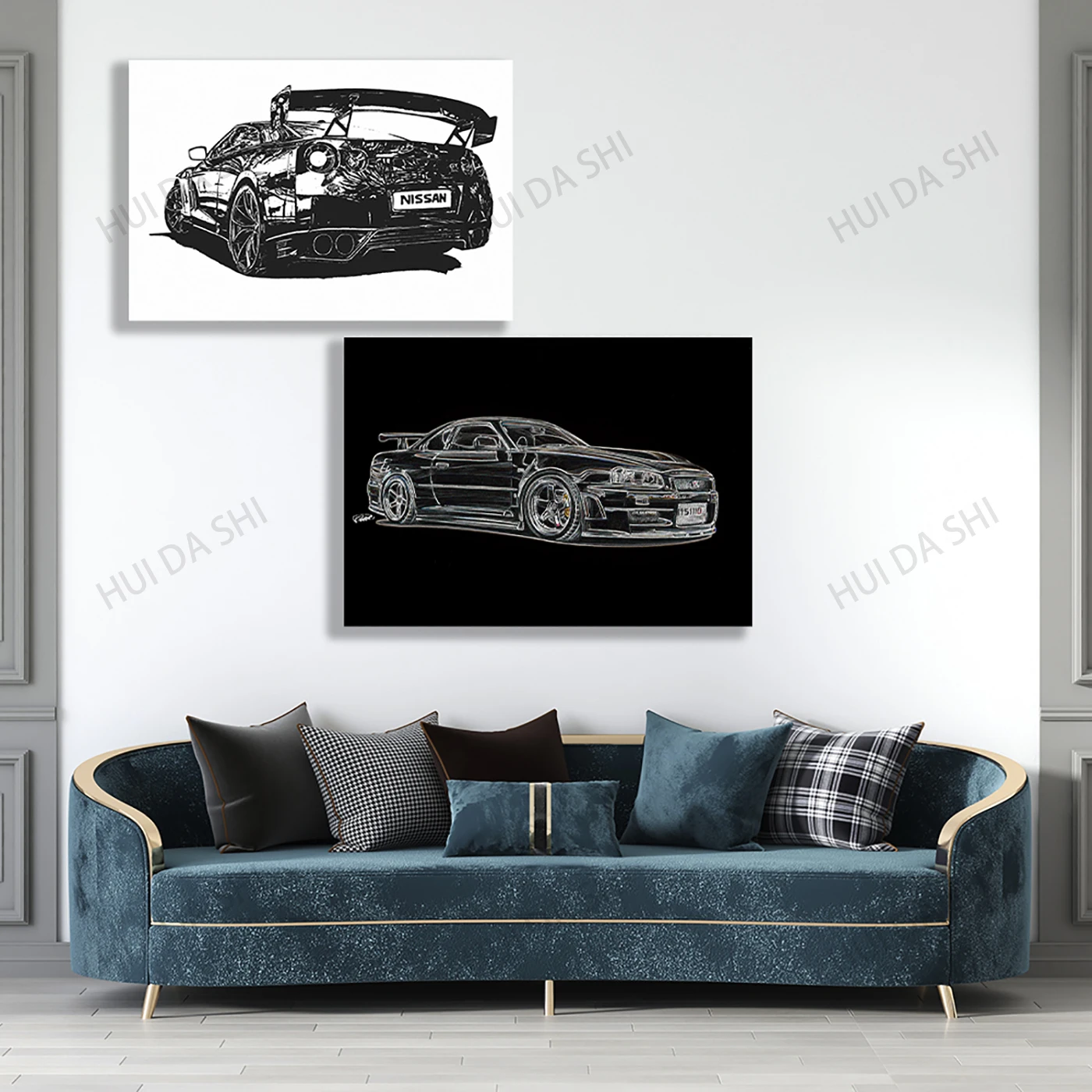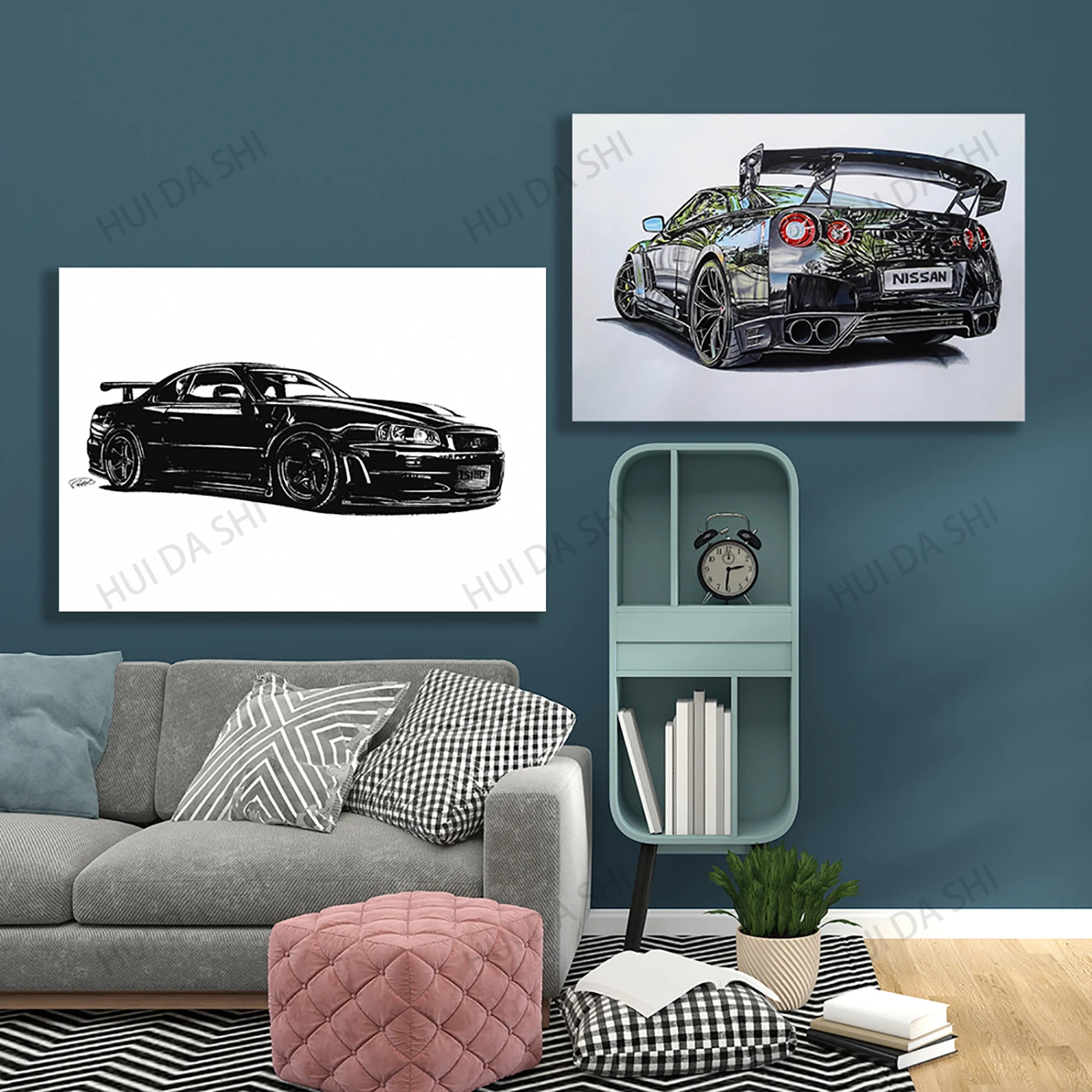 Nissan Skyline R35 GTR Художественная печать-печать на холсте плакат рисунок как плакат Художественная печать-идея подарка для мужчин