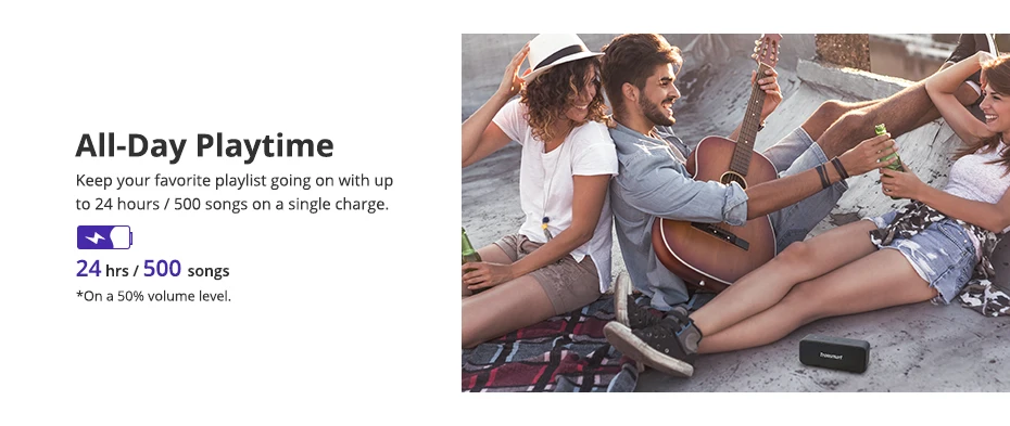 Сохраните ваш любимый плейлист в течение 24 часов/500 песен за одну зарядку.