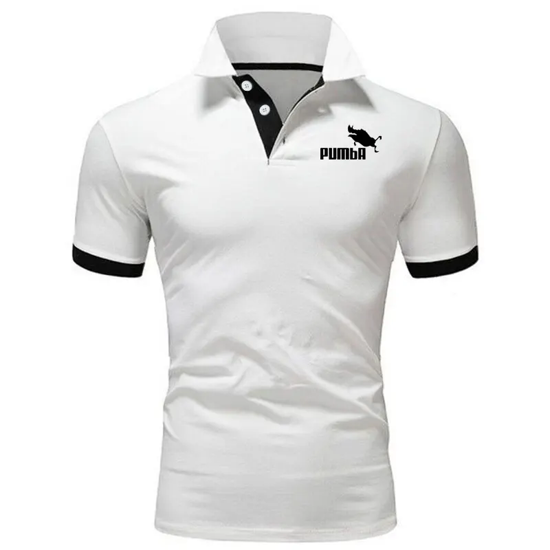 Рубашка-поло мужская с коротким рукавом, Повседневная деловая рубашка с воротником-стойкой, с принтом, темно-синяя, лето