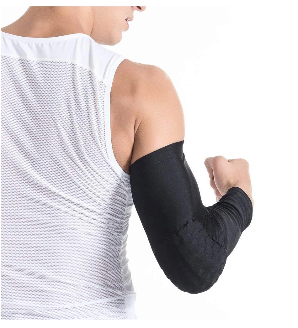 Особенности:Силиконовая Противоскользящая Лента, внутренняя часть с частицами ЭВА, тонкая прострочка прочного качестваВысокоэластичный дышащий материалГибкое закрытие, противоскользящий силикон, противоскользящая планка из мягкого силикона предотвращает соскальзывание руки во время движенияСконцентрированное давление на защитных зонах, снимает стрессОписаниеРазница-по сравнению с большинством прокладок в форме сот, Эта прокладка в форме щита новой конструкции больше подходит для вашего локтя, ее нелегко спадать и сползать вниз, А прохладный внешний вид позволит вам отличаться от других.Дышащая ткань-плотная, облегающая и дышащая компрессионная ткань обеспечивает стабильность суставов независимо от активности, избегая при этом зуда, распространенного на неопреновые опоры. Быстро впитывает пот, сохраняет ногу сухой и без запаха, обеспечивает часы непрерывного использования!Дополнительная поддержка колена для всех видов спорта-Влагоотводящая и эластичная лайкра + амортизация PEF обеспечивает достаточную поддержку, чтобы вы могли наслаждаться сложными видами спорта, такими как баскетбол, футбол, волейбол, бег, теннис, тяжелая атлетика, И многое другое.Дополнительная защита-утолщенные прокладки из ЭВА, такая же стоимость, большая защита. Защитите область локтя при повреждении спортивного столкновения или восстановлении суставов. Безопасный и мягкий для кожи вашего ребенка.