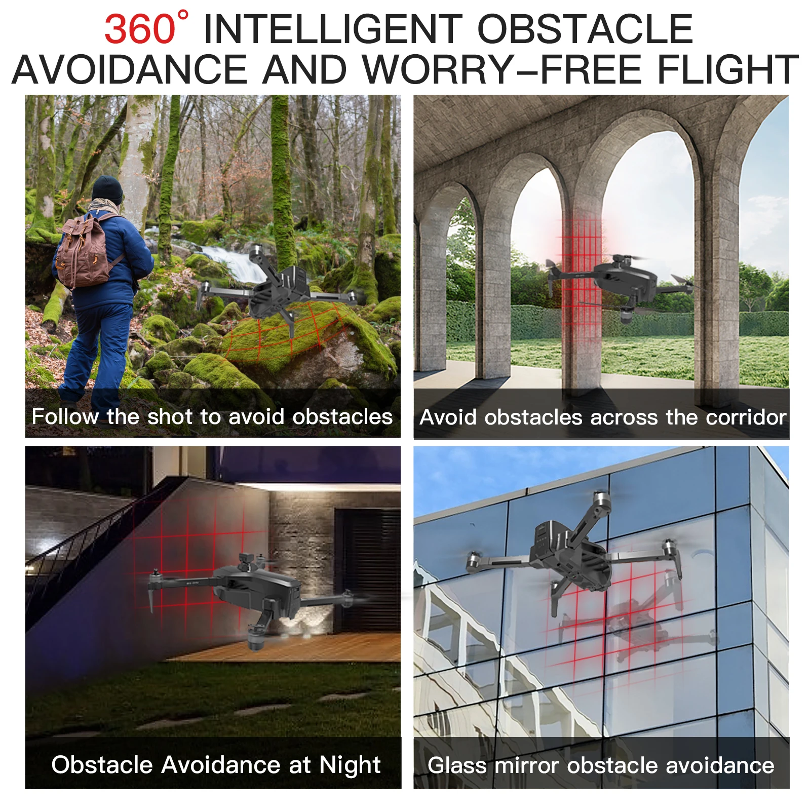 Устройство для предотвращения препятствий определяет, есть ли препятствия впереди через Веерообразное сканирование на 120 ° перед лазером, и пульт дистанционного управления подаст сигнал тревоги, Если препятствие обнаружено в пределах 20 метров, И дрон не может двигаться вперед.