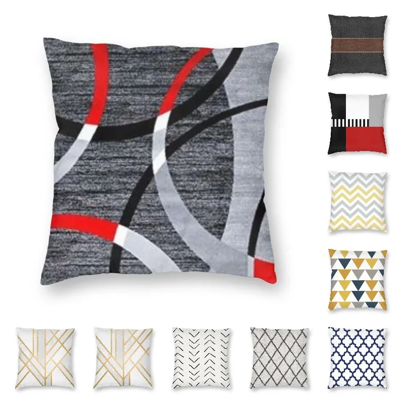 Абстрактная серая и красная подушка в современном стиле с треугольниками, домашняя декоративная подушка с геометрическим узором для автомобиля, черные, белые и желтые подушки