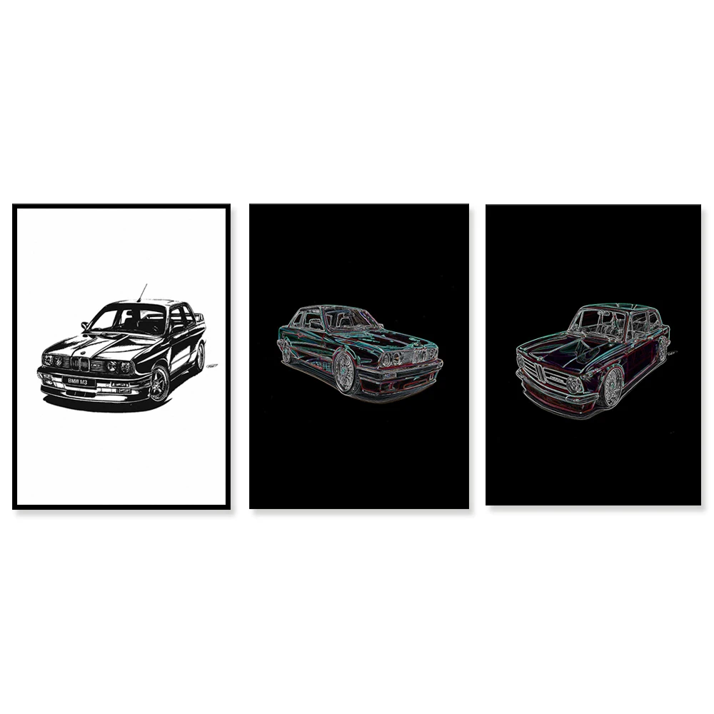 Bmw 3 серии E30 Художественная печать-E9 3,0 CSIE30 M32002Tiiрисунок в качестве плаката, художественный плакат, печать плаката, идея подарка для мужчин