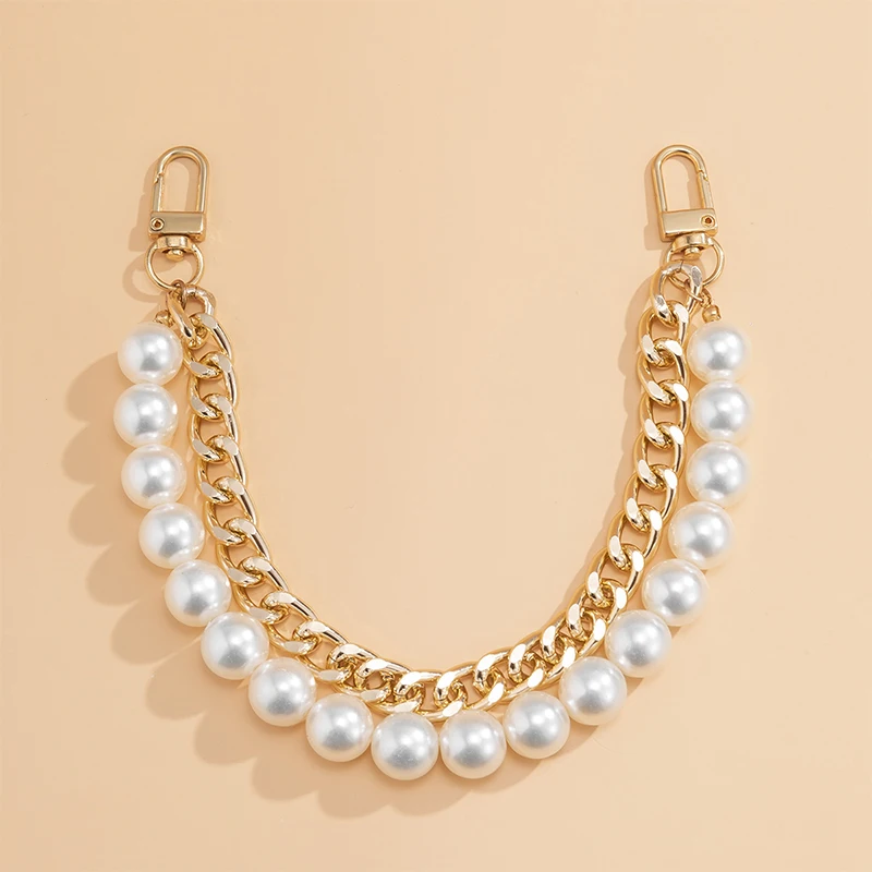 Женская цепочка для сумок, с искусственным жемчугом, золотого и серебряного цвета, Модная элегантная декоративная цепочка для сумок