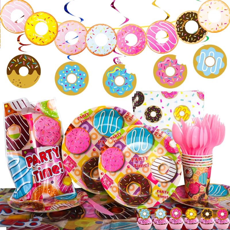 Одноразовая посуда в виде пончика на день рождения, праздничная вечеринка, бумажная тарелка для малышей, чашка, бумажный мешок для полотенец