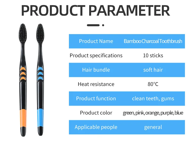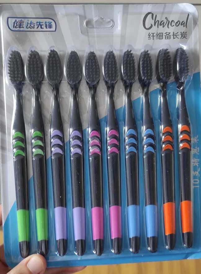 10 шт., мягкая щетина, зубная щетка, бамбуковый уголь, антибактериальный уход за полостью рта, Глубокая чистка, портативная, Экологически чистая